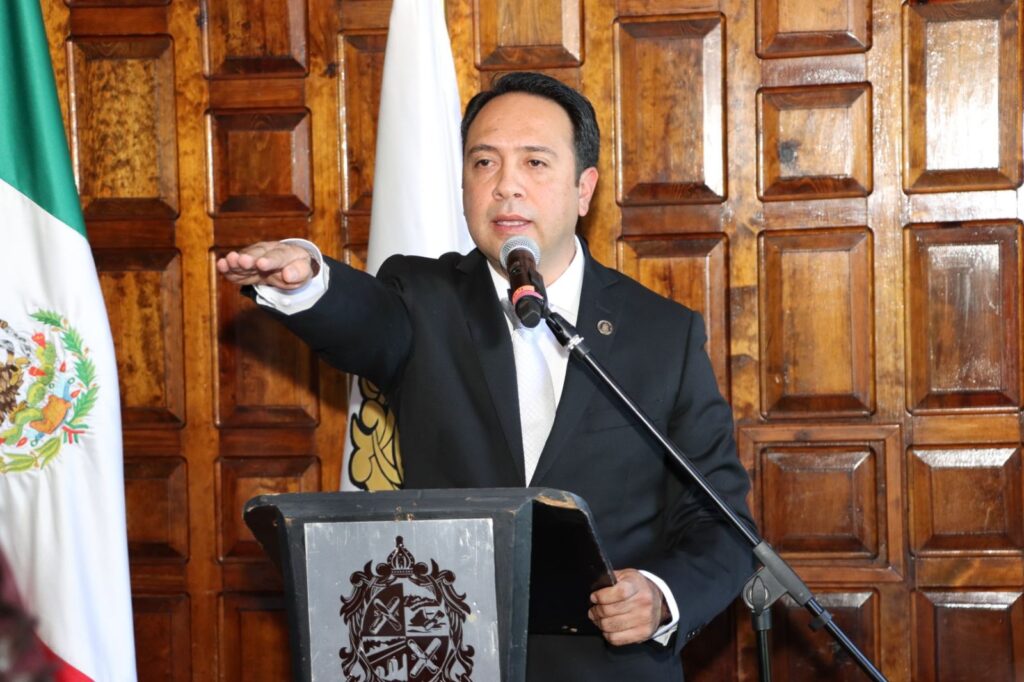 Durante su mensaje a la ciudadanía, Sámano Jiménez subrayó que su gobierno trabajará bajo los ejes de Buen Gobierno y Honestidad, Seguridad y Paz Social, Desarrollo Económico, Medio Ambiente, Agua y Recursos Naturales, así como Esperanza y Bienestar Social.