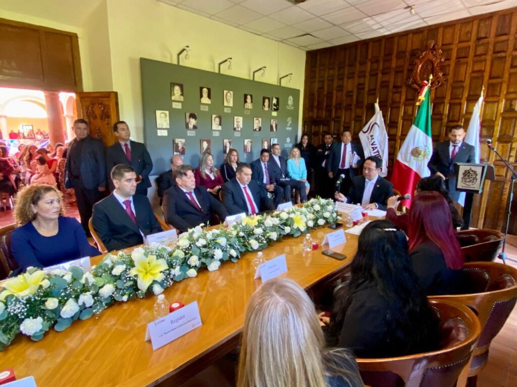 La ceremonia se llevó a cabo en la Sala de Cabildo durante la Primera Sesión Solemne del H. Ayuntamiento 2024-2027, con la presencia del Presidente Municipal, la Síndico Marisol Alvarado Barrera y los regidores Rafael García del Horno, Rosa Elvira López Jiménez, Javier Cardoso López, Nancy López Montes, Jorge Alfonso Villaseñor Ruíz, María Isabel Contreras Ramírez, Mónica Ortega Lara, Karlo Kami Medina López, Marieli Cervantes Vega y Leslie Pebels Montserrat Pérez Vázquez. También asistieron directores y coordinadores de la nueva administración.