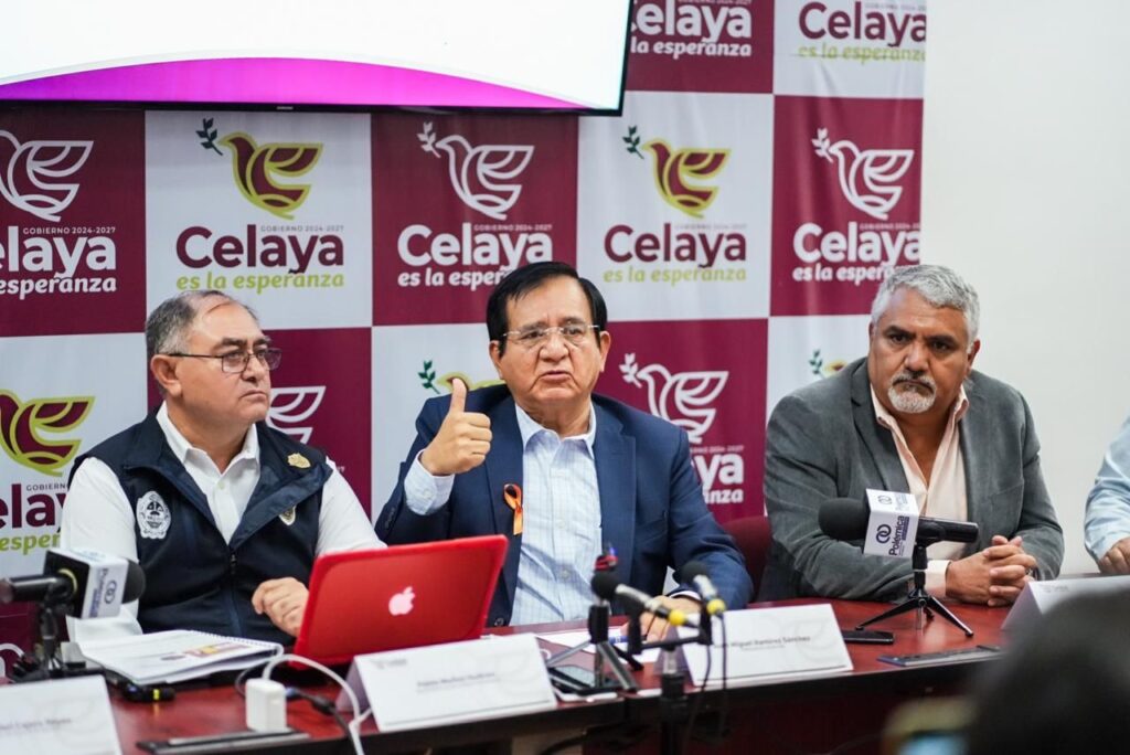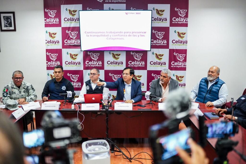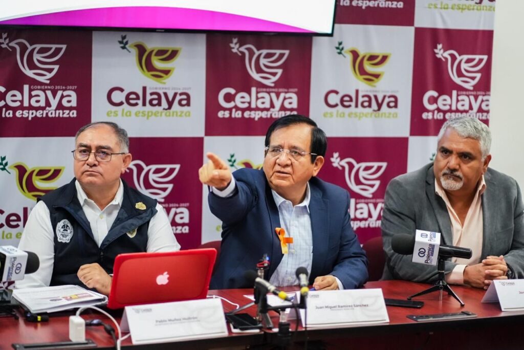 Se llevó a cabo la segunda rueda de prensa para presentar resultados en materia de seguridad en el municipio de Celaya, en la que participaron el presidente municipal, Juan Miguel Ramírez Sánchez; Pablo Muñoz Huitrón, secretario de Seguridad; Bernardo Rafael Cajero Reyes, director de Policía; Martín Filiberto García Medina, director de Tránsito y Policía Vial; Jorge Acuña Dávalos, director del INFOPOL; José Manuel Aguilar, comandante del Batallón de la Guardia Nacional en Celaya; general brigadier D.E.M, Laureano Carrillo Rodríguez; Marco Antonio Inda Jaime, representante de la Fiscalía General de la República; Francisco Flores Ramírez; comisario jefe comandante regional de las Fuerzas de Seguridad Pública.
