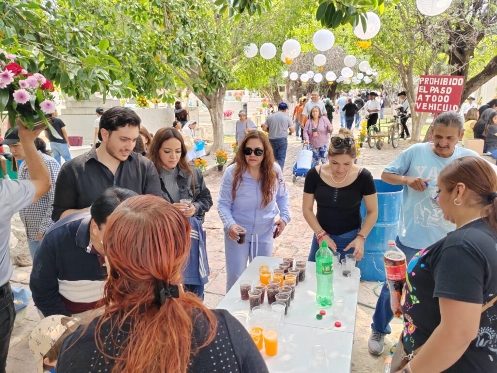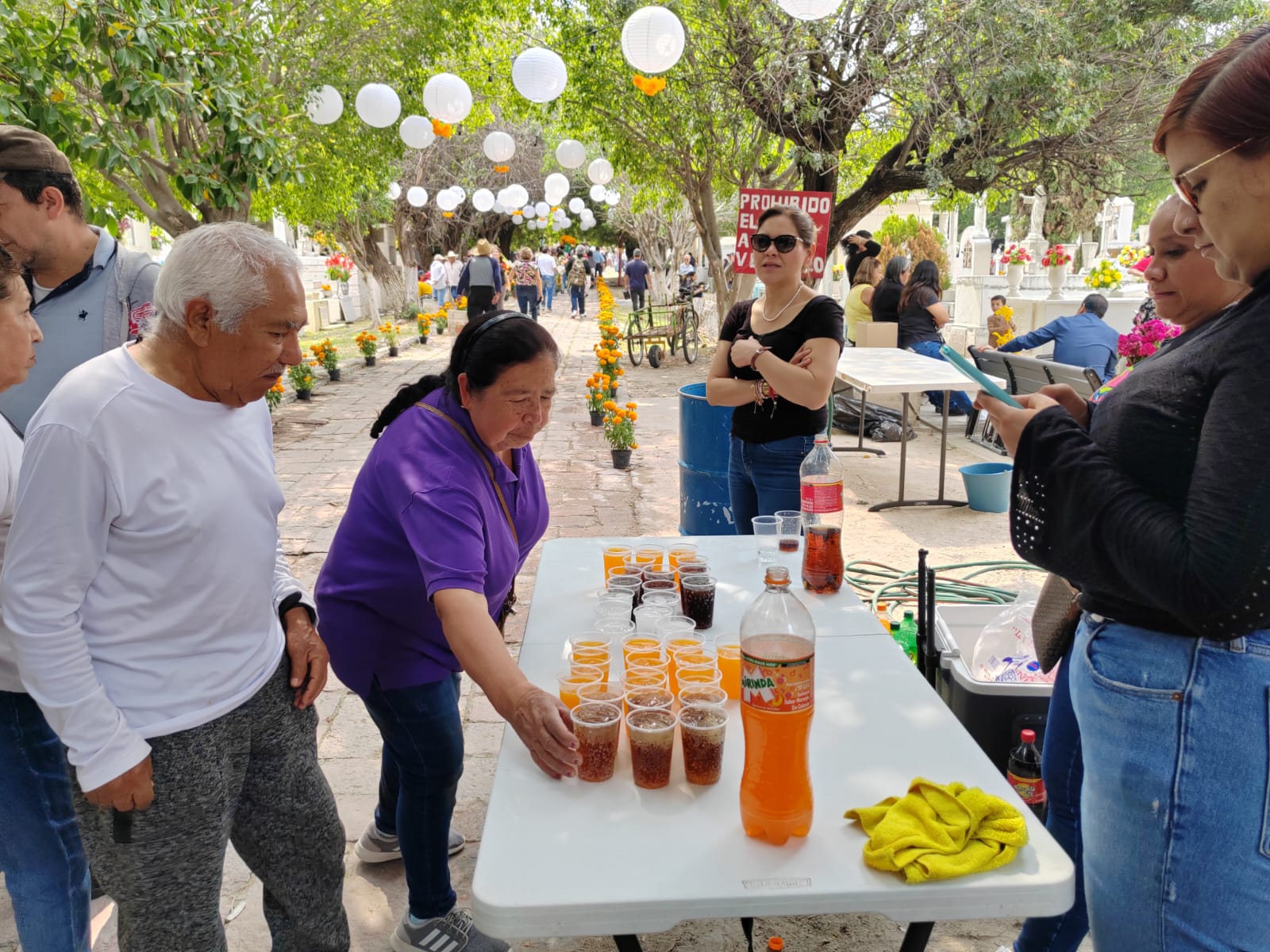En el marco de las festividades del Día de Muertos, la presidenta del DIF Municipal, María Teresa Cerda Rosas, junto a su equipo de trabajo, instaló un puesto de hidratación en la entrada principal del panteón municipal San Elías. La iniciativa surgió para brindar apoyo a las personas que, desde temprana hora, se dieron cita en el cementerio para honrar a sus seres queridos.