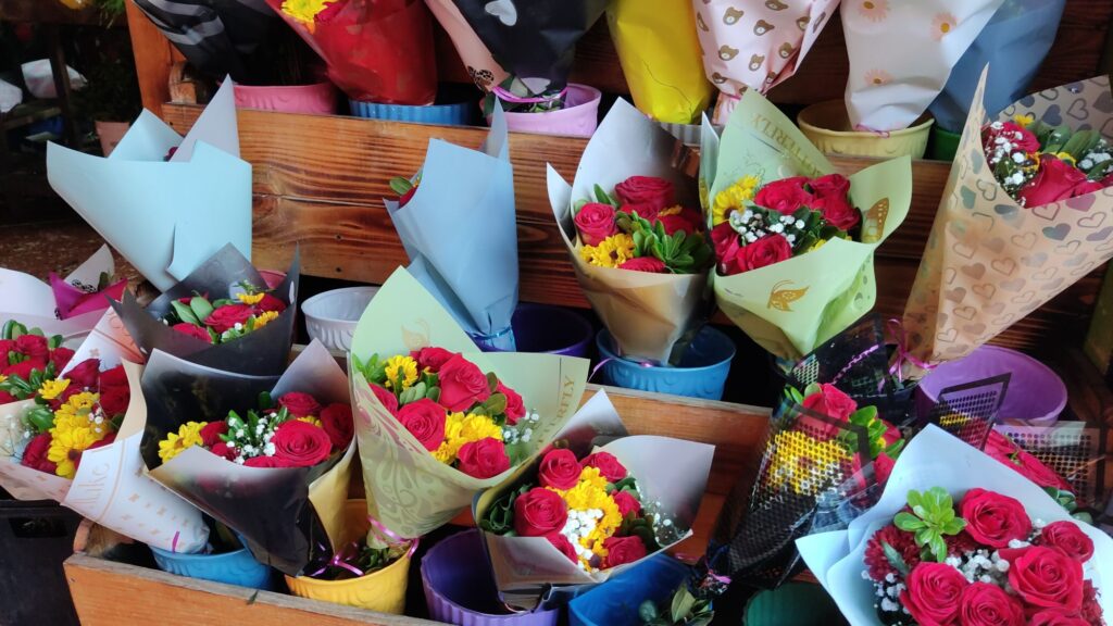 Por la parte exterior se colocó un pequeño tianguis donde se pudo apreciar: vendedores de flores alusivas al día, macetas, flores artificiales así como diversos puestos de comida y bebidas.