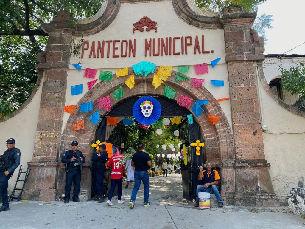 La entrada de los panteones así como de la calle donde están ubicados también tiene presencia de cuerpos de seguridad pública para garantizar espacios seguros a las familias Salvaterrenses.