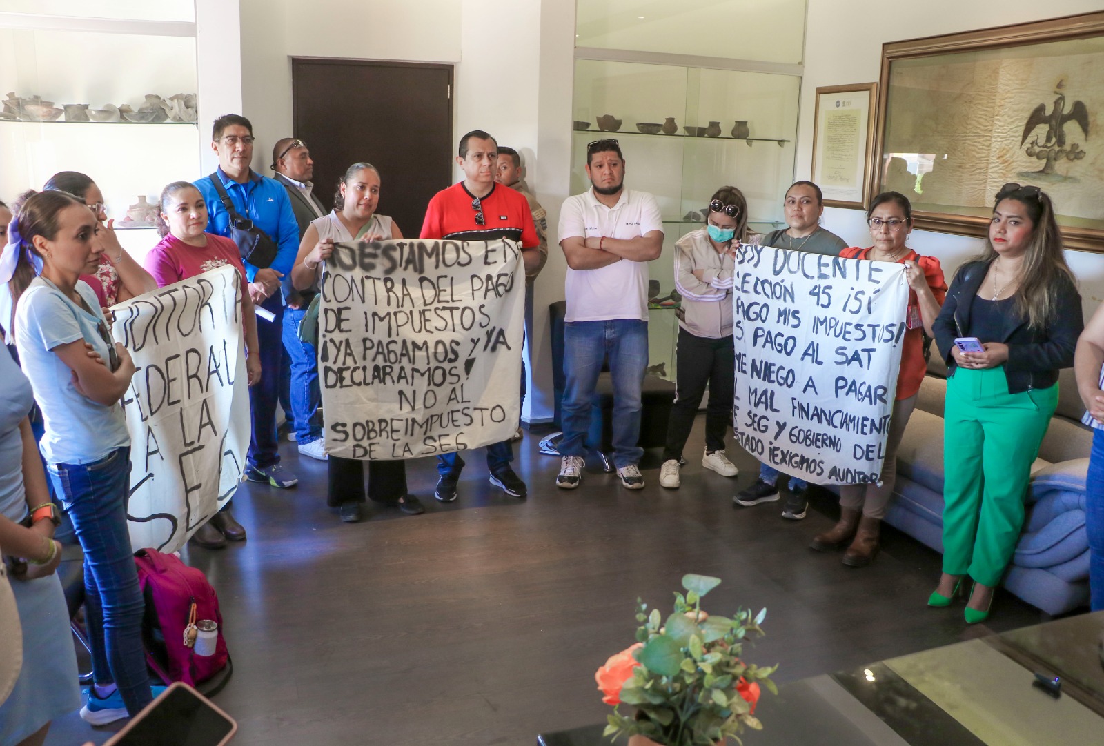 El presidente municipal, Mauricio Estefanía, recibió a un grupo de cerca de 15 maestros de la sección 45, que externaron su inquietud con la situación de descuentos que han presentado en últimos días.