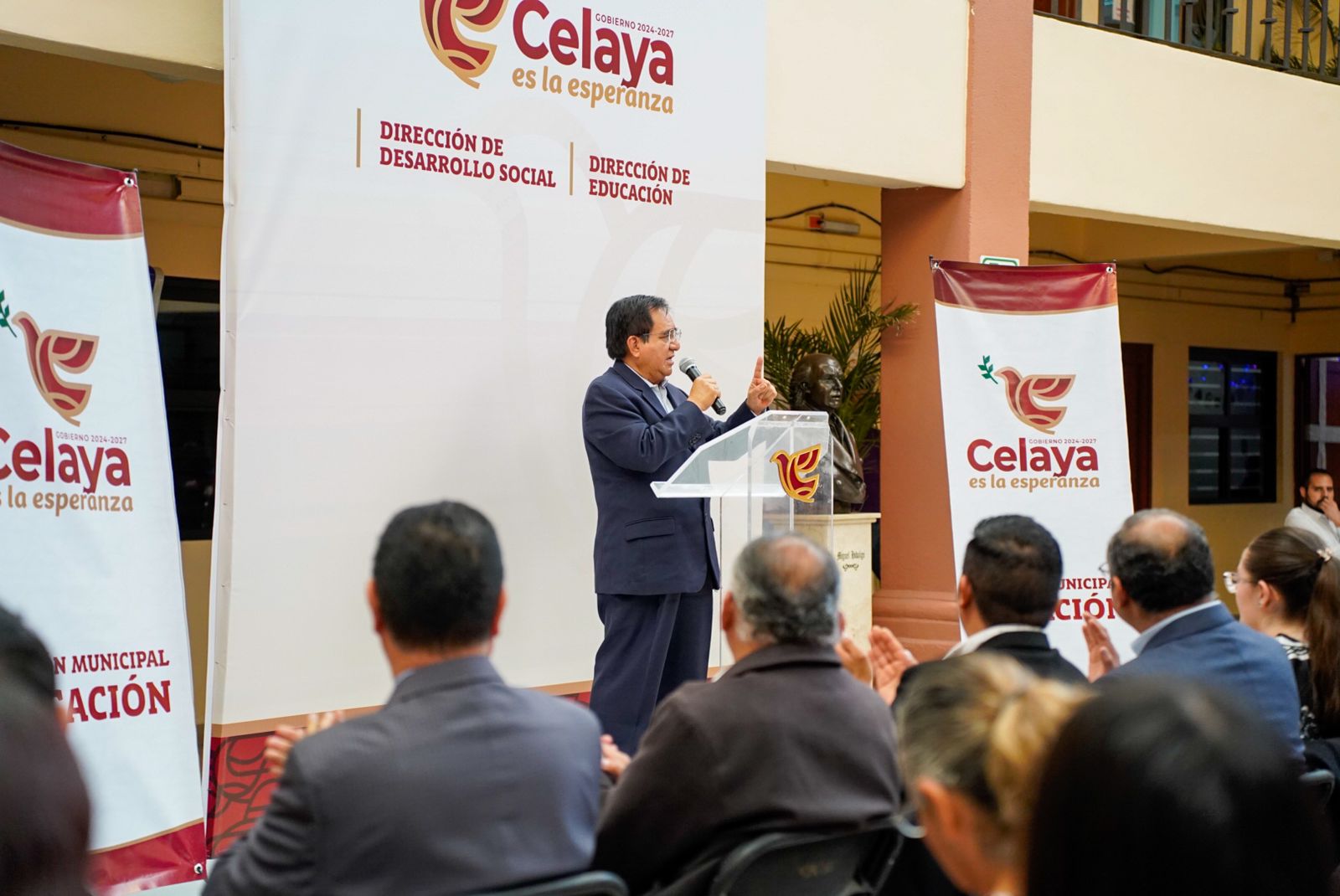 “Para mí lo más importante, la razón de ser de cualquier institución, incluyendo esta Presidencia Municipal, son los estudiantes, por eso en nuestro programa de trabajo nos planteamos tres grandes pilares a desarrollar: la cultura, el deporte y la educación. Vamos a duplicar por millones de pesos el concepto de educación, lo vamos a hacer porque lo tenemos en nuestro programa, porque por eso luchamos para estar aquí, para aumentar los recursos a la educación, a la cultura, al deporte y al trabajo”, expresó, en su mensaje.