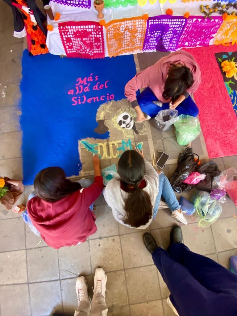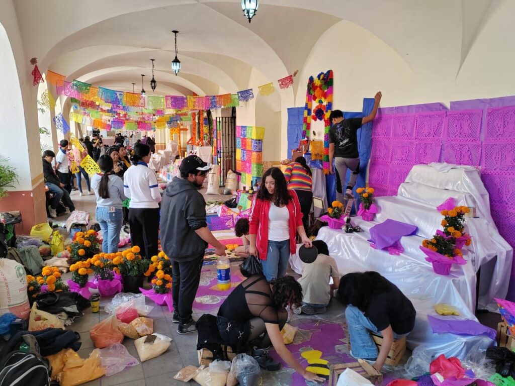 En el Pasaje Peregrina, el presidente municipal y regidores del H. Ayuntamiento participaron en la inauguración de una exhibición de altares de muertos realizados por instituciones educativas.