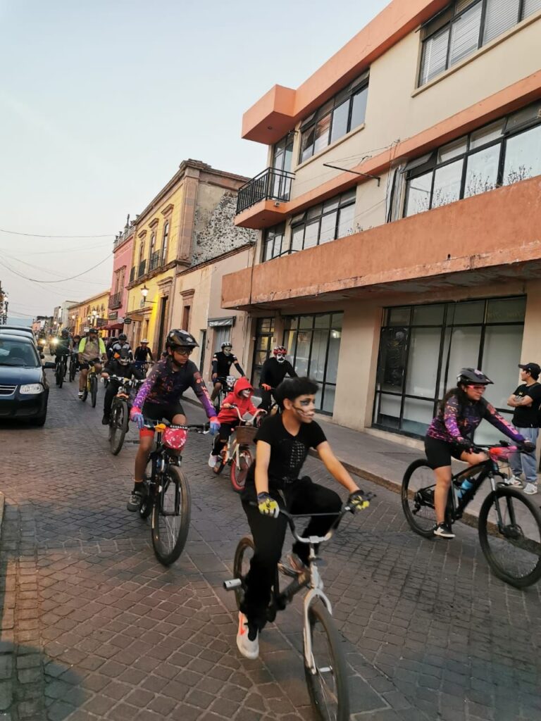 Posteriormente, se inauguró el “Altar In Memoriam” en el kiosco del jardín principal, en honor a las víctimas de la Ex Hacienda de San José del Carmen. La jornada continuó con la “Rodada Catrina,” un evento deportivo donde decenas de ciclistas recorrieron las principales calles de la ciudad, luciendo creativos atuendos inspirados en la festividad.