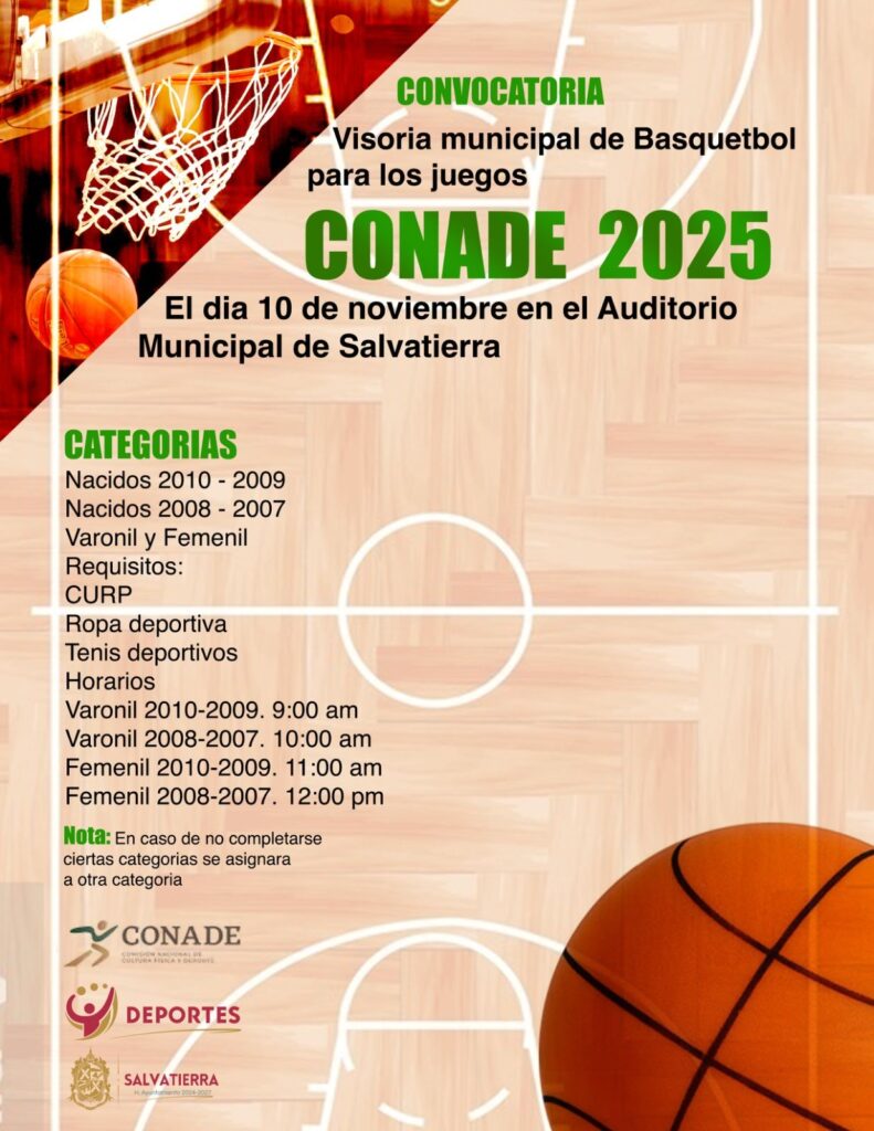 La visoria se llevará a cabo el próximo 10 de noviembre en el auditorio municipal, en un horario de 9:00 a.m. a 12:00 p.m. Está dirigida a hombres y mujeres nacidos entre los años 2007 y 2010. Los requisitos para participar son presentar la CURP y asistir con ropa deportiva y calzado adecuado para la práctica de básquetbol.