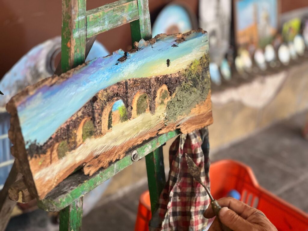 En las calles de Salvatierra destaca un talento innato, Ernesto Bautista Serna originario de Acámbaro, este pintor de 67 años lleva más de 50 años dedicándose al arte y un promedio de 15 a 17 años acudiendo al centro histórico de la ciudad, donde expone sus majestuosas obras al tiempo que las realiza.