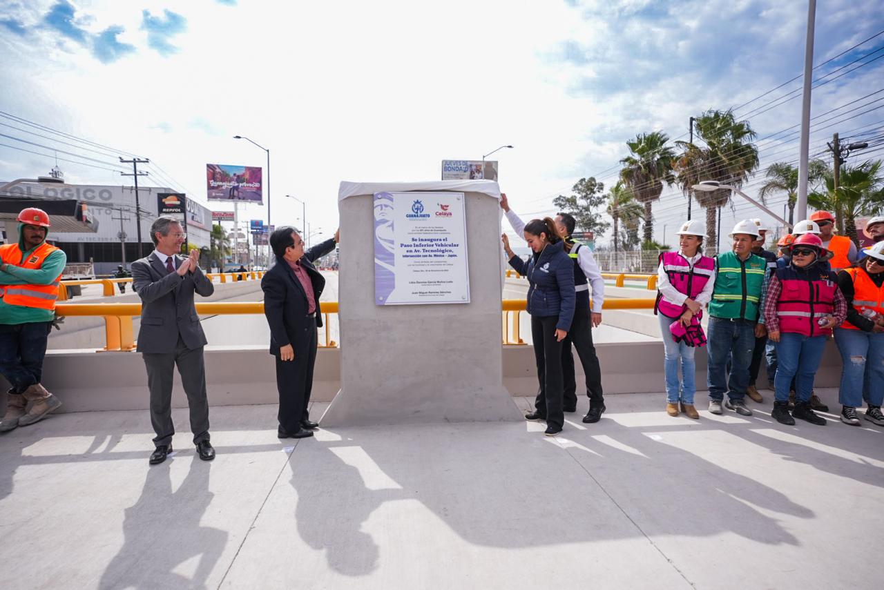 Para mejorar la movilidad de los celayenses y visitantes que circulan por la zona norte de la ciudad, fue inaugurado y abierto el Paso Inferior Vehicular de la avenida Tecnológico, intersección con México-Japón, después de 11 meses de trabajos.