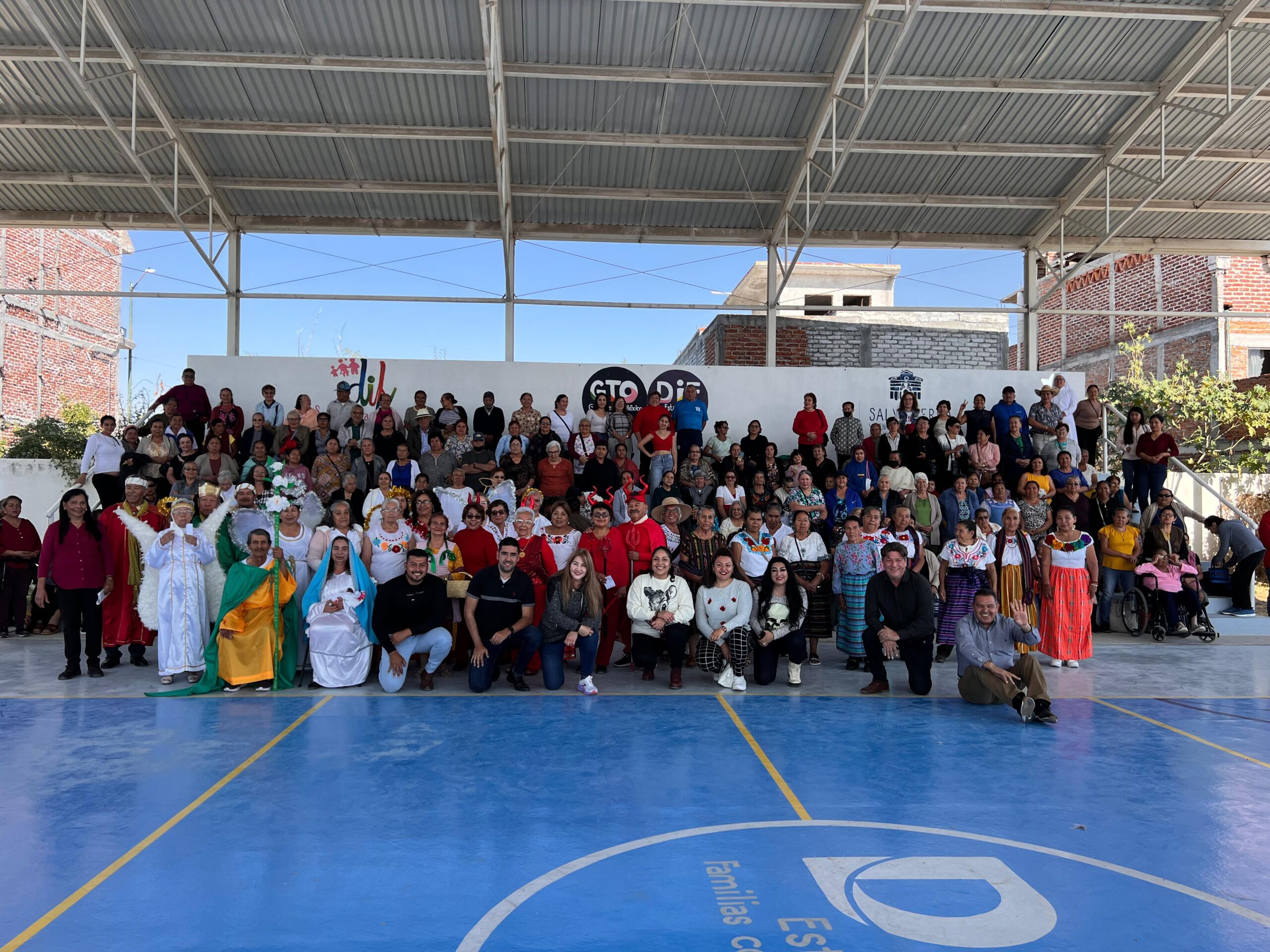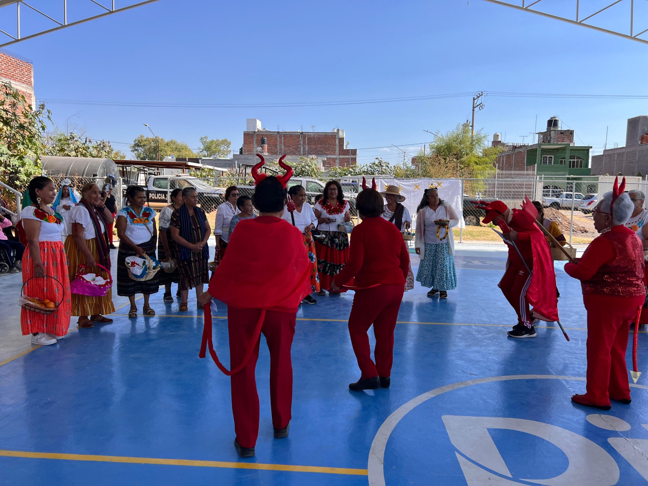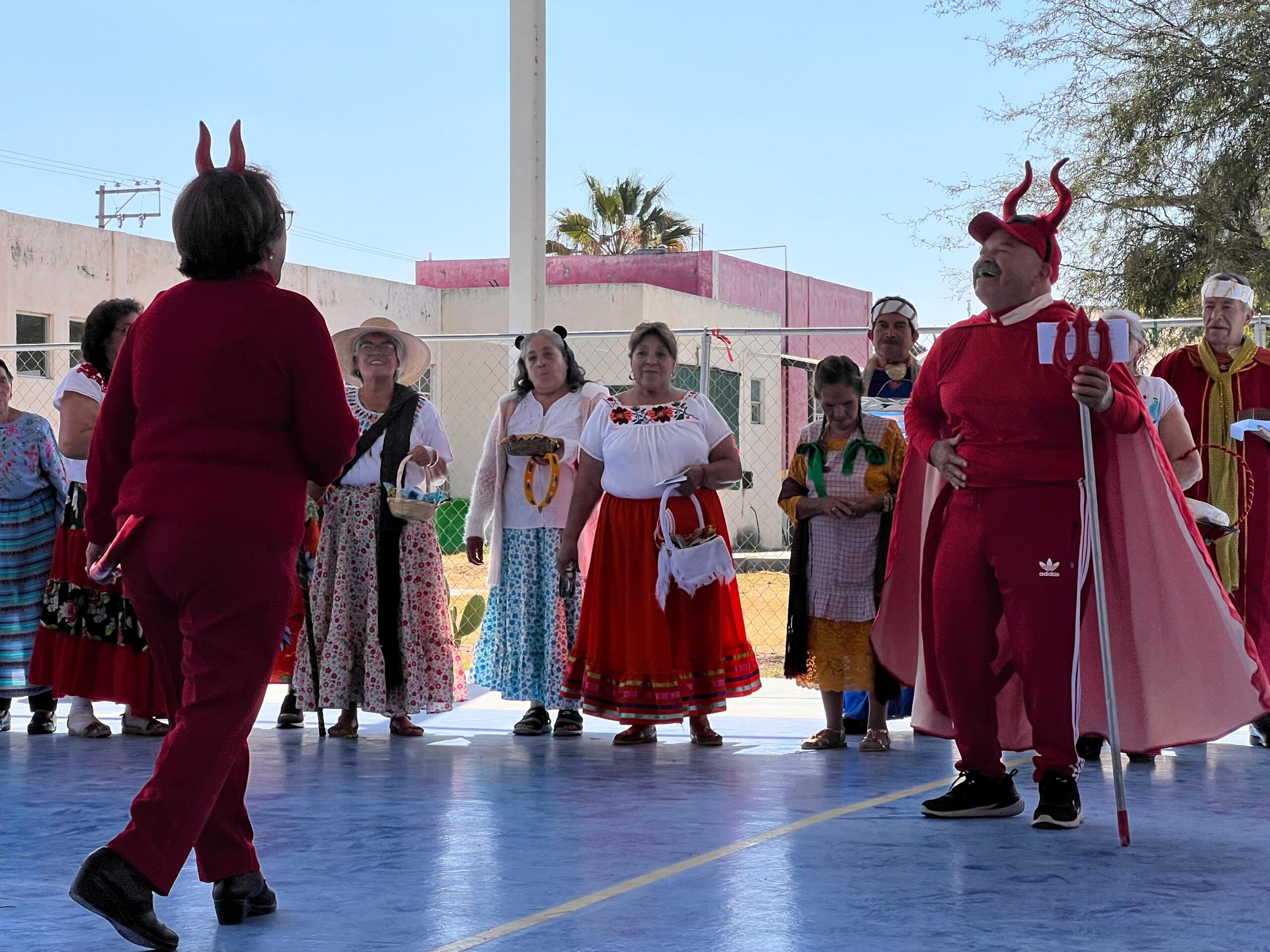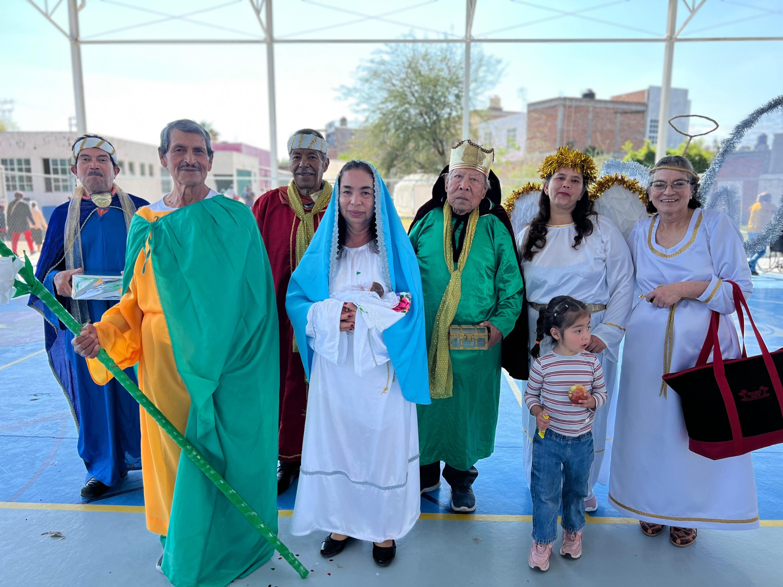 La celebración comenzó con una dinámica de activación física organizada por el área de deportes, fomentando el movimiento y la salud entre los asistentes. Posteriormente, se presentó una emotiva pastorela que llenó de risas y entusiasmo a los participantes.