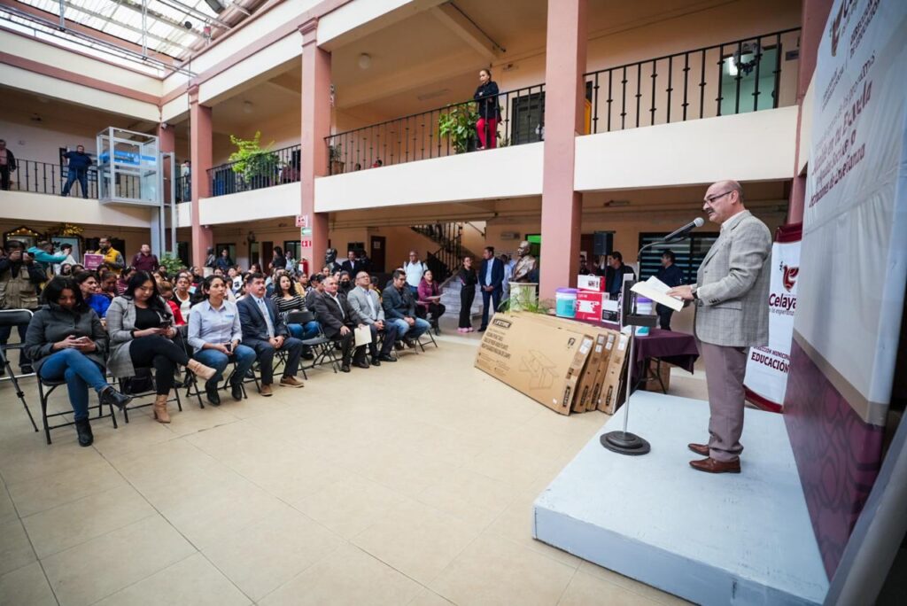 En un acto celebrado en el patio de la presidencia municipal, estuvieron presentes síndicos y regidores del Ayuntamiento, además de los directivos de las escuelas beneficiadas, Valentín Sánchez, director general de Desarrollo Social; Víctor Hugo Sinecio, director de Educación, y Jesús Paz Gómez en representación del presidente municipal, Juan Miguel Ramírez Sánchez.