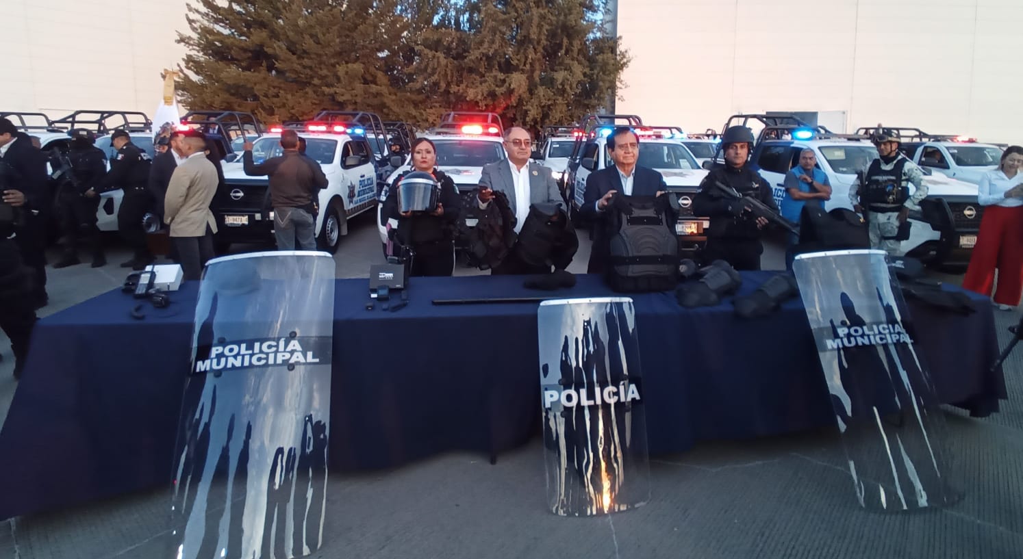 Durante la Primera Sesión Ordinaria de Reinstalación del Consejo Estatal de Seguridad Pública, el presidente municipal, Juan Miguel Ramírez, recibió el equipo que será destinado a los policías municipales por parte del titular del Secretariado Ejecutivo del Sistema Estatal de Seguridad, Adrián Mata Osio.
