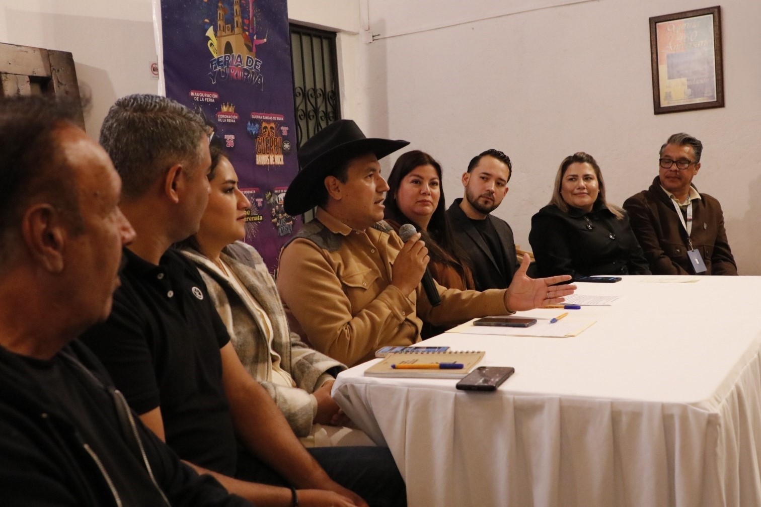 Participaron también en la conferencia el síndico Omar González Silva; la regidora Sofía López Ayala; el Secretario del Ayuntamiento, Braulio Gómez Núñez; y la y los titulares de la Casa de Casa de la Cultura, Fiscalización y Turismo. Así como el vocero de la promotoría artística, Armando Lemus.