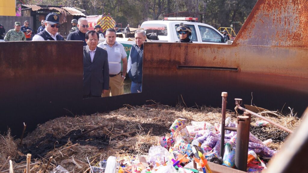 Para la destrucción del material pirotécnico se contó con la supervisión y control, por parte de elementos de Bomberos; además de la presencia del Secretario de Seguridad Ciudadana, Pablo Muñoz Huitrón; el director de Seguridad Pública, Bernardo Rafael Cajero Reyes; director de Fiscalización, Eduardo Griss Kauffman; director de Protección Civil, Jorge Santoyo Niño; y el director de C4, Alonso Gómez Alvarado; además de representantes de la SEDENA y Guardia Nacional.