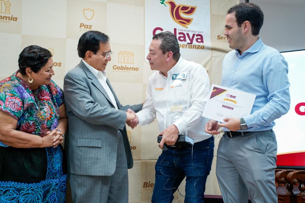 “Bachoco dona al DIF toneladas de productos de pollo y de cerdo, y eso hace que tengamos la posibilidad de mantener cerca de 40 comedores y vamos en este periodo, con el DIF, a tratar de construir otros cuatro o cinco comedores porque queremos que los niños por lo menos tengan una comida y vamos a seguir pidiendo el apoyo principalmente de Bachoco y muchísimas otras empresas que nos están ayudando”, dijo el alcalde al referirse a la galardonada con el reconocimiento “Empresa Socialmente Responsable”.