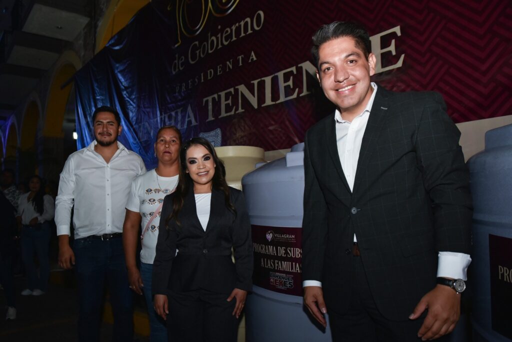 El presidente del patronato del DIF, senador Emmanuel Reyes entregó tinacos y estufas ecológicas, para apoyar a familias villagranenses de la cabecera y de las 14 comunidades, en el marco de los cien días de gobierno de la presidenta Cinthia Teniente.