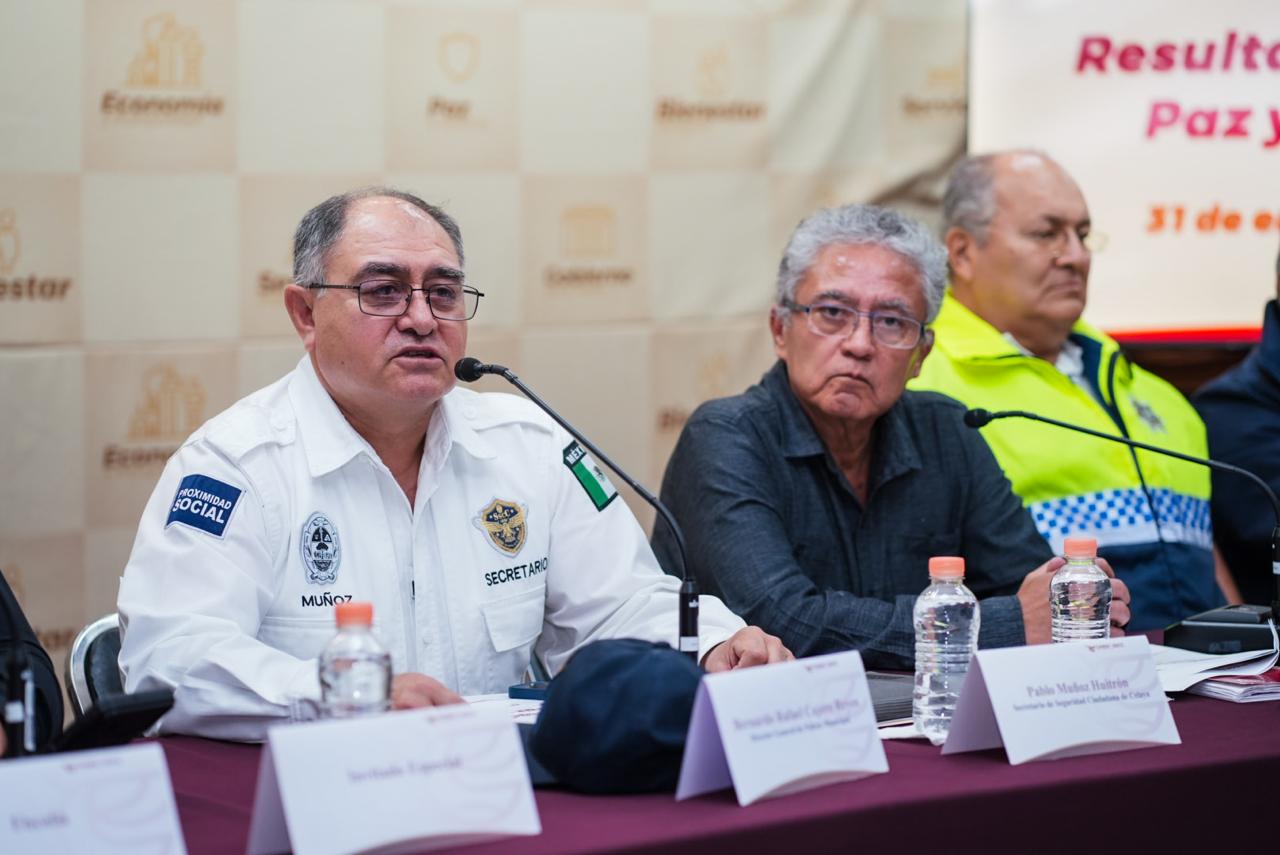 Lo anterior durante la rueda de prensa con el eje Paz y Justicia, esta ocasión coordinada por el jefe de gabinete, Gustavo Paloalto, y con la participación de los titulares de Policía Municipal, Tránsito y Policía Vial, Fiscalización, así como el encargado del Infopol y el coordinador operativo de Protección Civil y Bomberos.