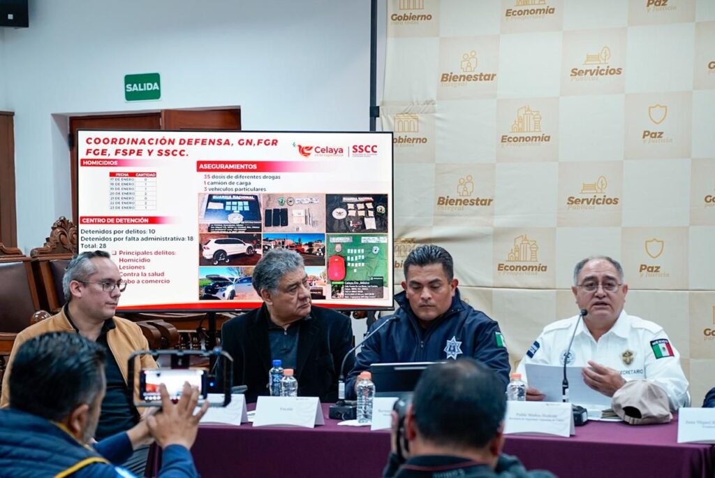 Así lo dieron a conocer las autoridades encabezadas por el presidente municipal, Juan Miguel Ramírez Sánchez; el secretario de Seguridad Ciudadana, Pablo Muñoz Huitrón; el coronel de infantería de Estado Mayor, Rubicel Santos Campos; el comandante del Batallón de la Guardia Nacional, coronel de infantería Jaime Gerardo Torres; el representante de la Fiscalía General, Marco Antonio Inda Jaime, así como los directores que conforman la Secretaria de Seguridad Ciudadana de Celaya.
