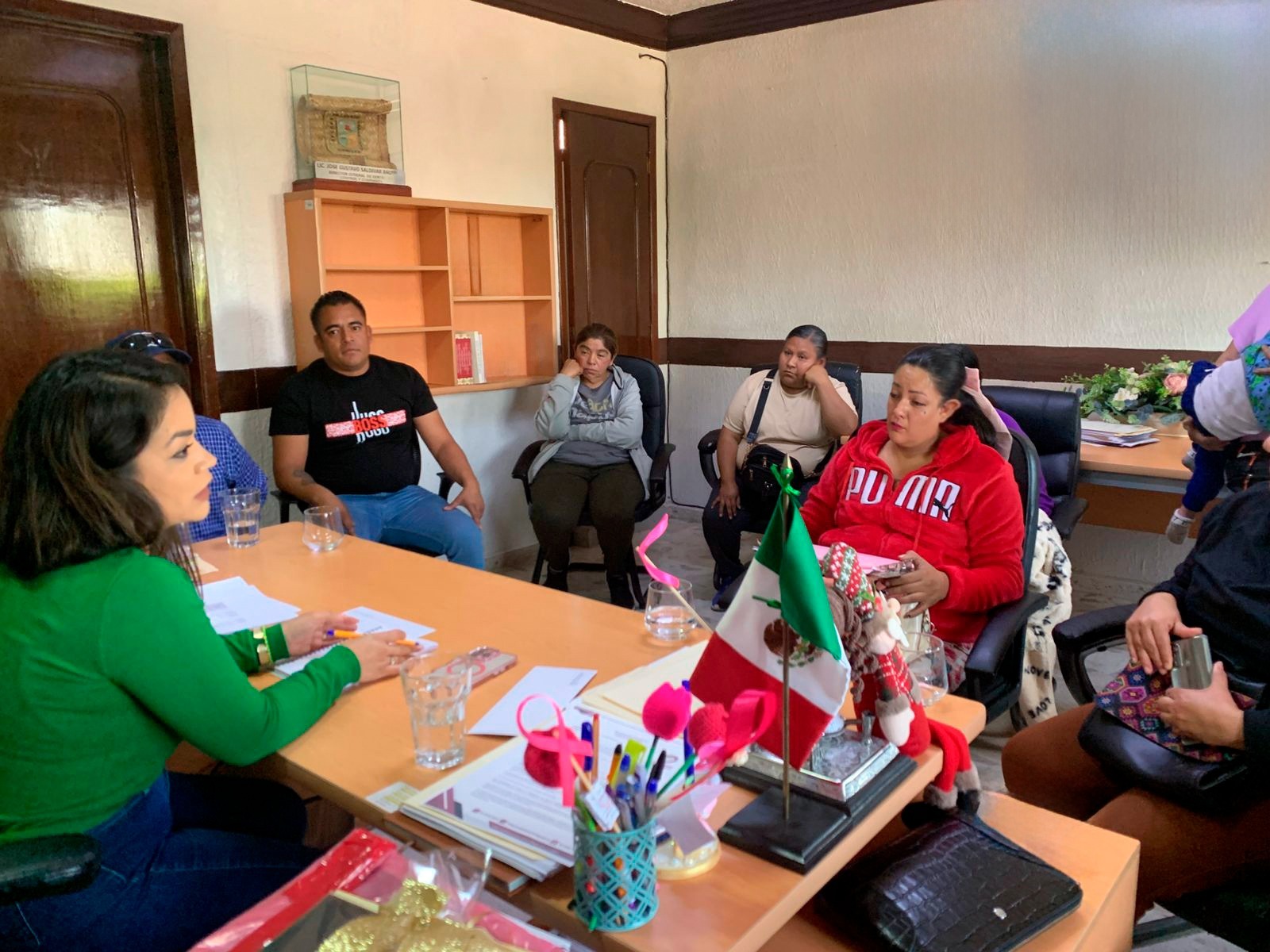 Comerciantes de temporada se reunieron con la presidenta municipal Cinthia Teniente y los directores de Protección Civil Javier Villafuerte y de Fiscalización Roberto Antonio Mendoza López, para atender el problema que enfrentaron con el incendio generado en un pastizal contiguo a la calle donde se encuentran instalados.