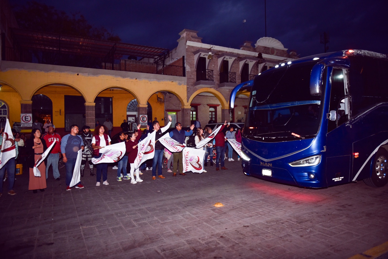 Luego de pasar lista a los participantes, abordaron dos autobuses y se dio el banderazo de salida, al tiempo en que los familiares los despedían agitando las manos cuando y rodaron los autobuses rumbo a la carretera.