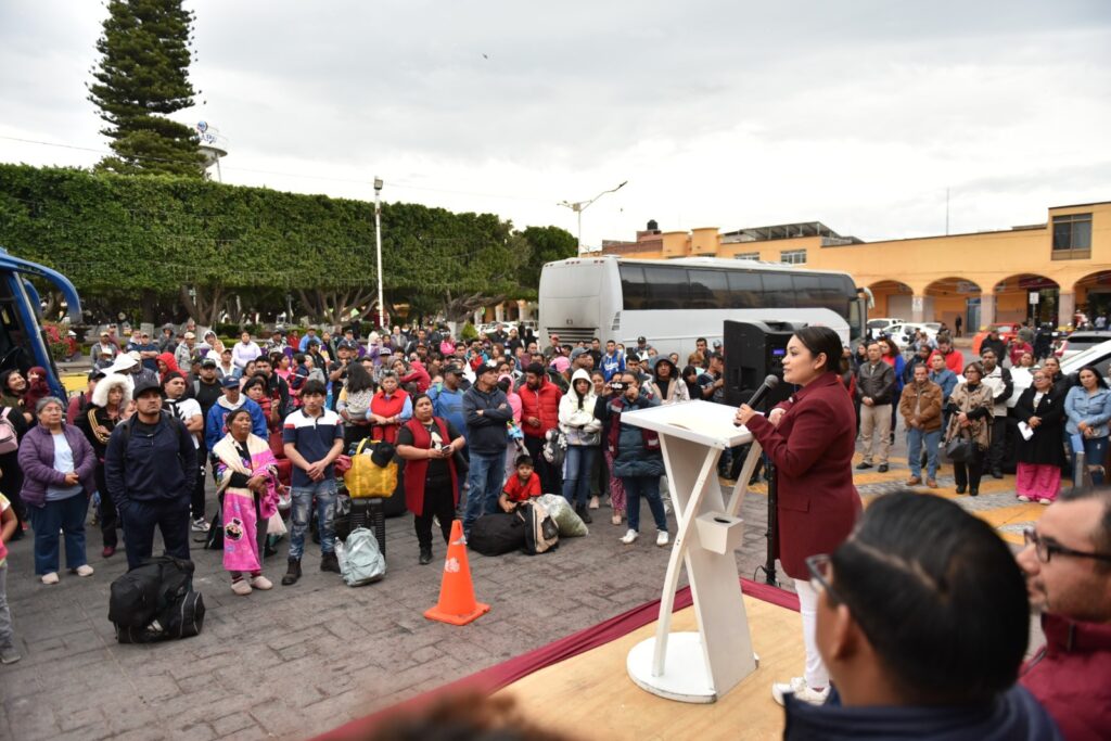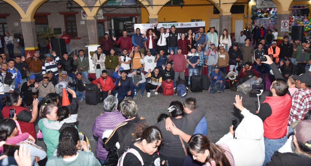 La presidenta municipal Cinthia Teniente, el senador Emmanuel Reyes y familiares los despidieron. Se trata de hombres jóvenes en edades de 18 a 40 años, que fueron seleccionados de entre un grupo de poco más de 200, para la capacitación y trabajar en los estándares que aplican los norteamericanos para sus siembra y cosechas.
