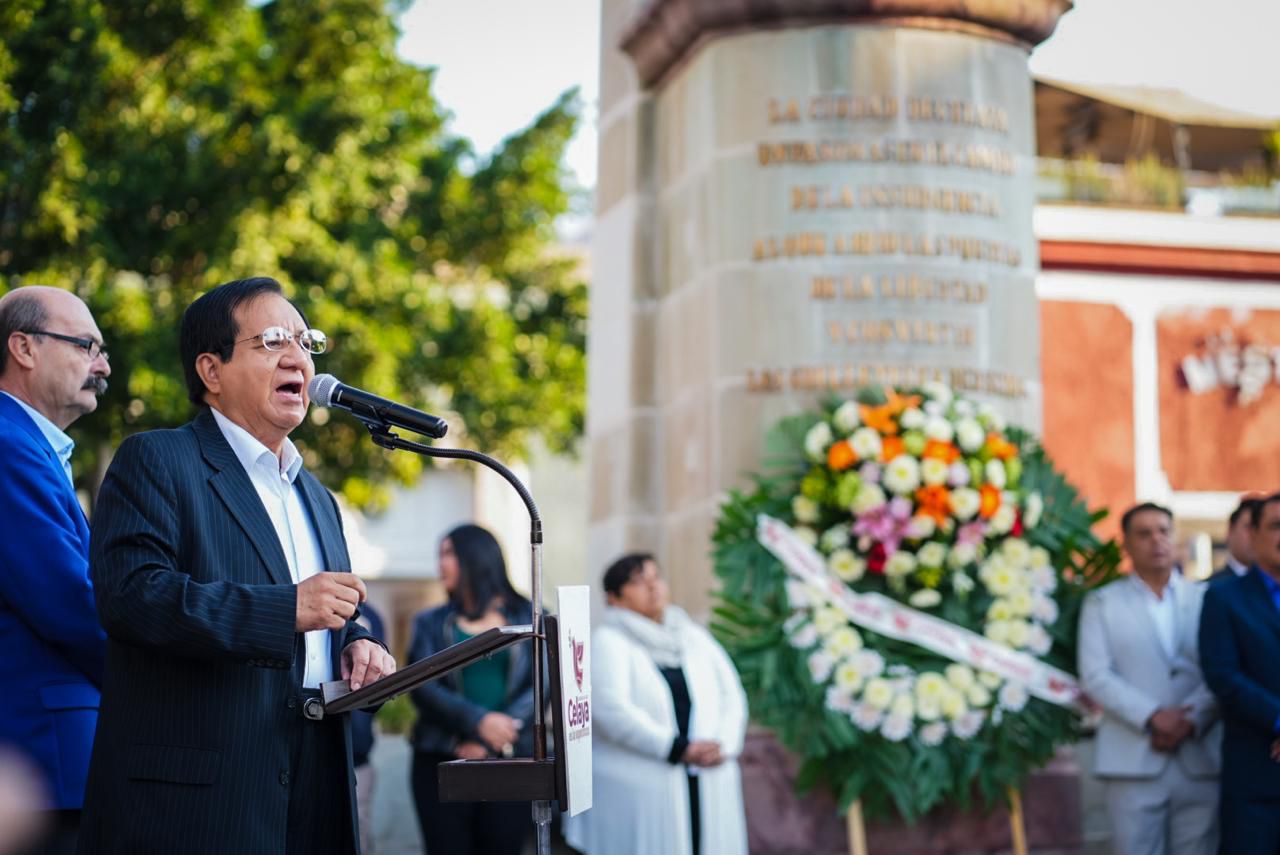 El acto inicio con los honores a la bandera y la entonación del himno nacional, acompañados por la Banda de Guerra de la Policía Municipal y la escolta del Instituto de Formación Policial, para después dar paso a la reseña histórica de los acontecimientos que hoy se conmemoran.