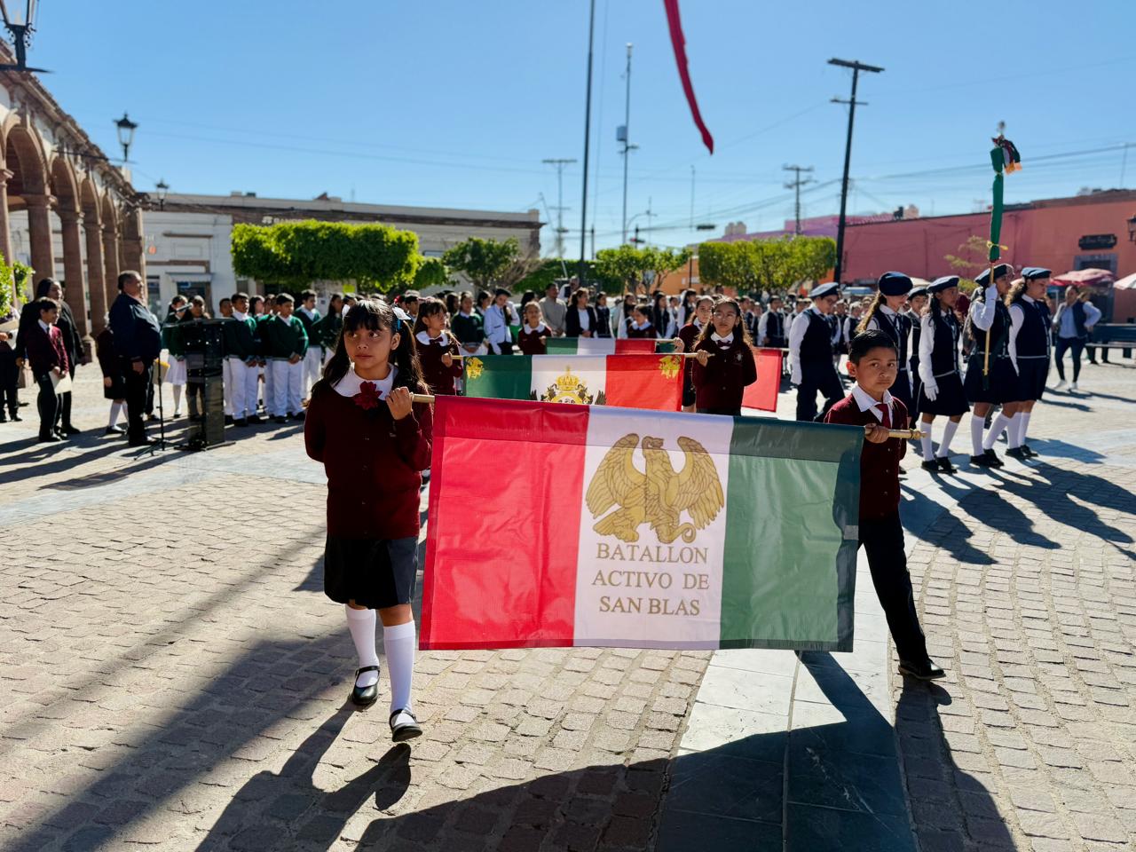 Durante la ceremonia, se realizaron los honores a la bandera, se entonó el Himno Nacional Mexicano y como parte de la conmemoración, estudiantes presentaron una reseña histórica sobre la evolución de la bandera de México a lo largo del tiempo, mostrando las distintas versiones que ha tenido.