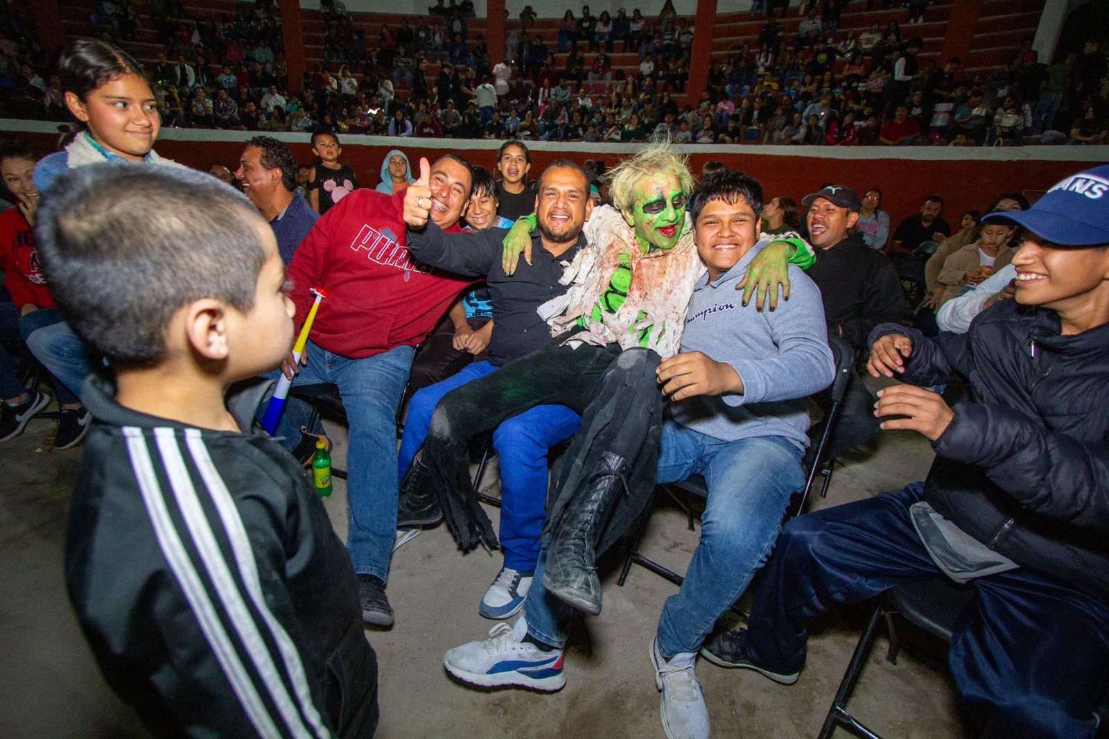 A lo largo del evento, los luchadores interactuaron con el público, tomándose fotografías y provocando a los espectadores con intensos duelos verbales. La emoción fue especialmente notable entre niñas y niños, quienes acudieron con máscaras de sus ídolos como La Parka, Místico, Octagón, Abismo Negro, El Santo, Blue Demon, entre otros.