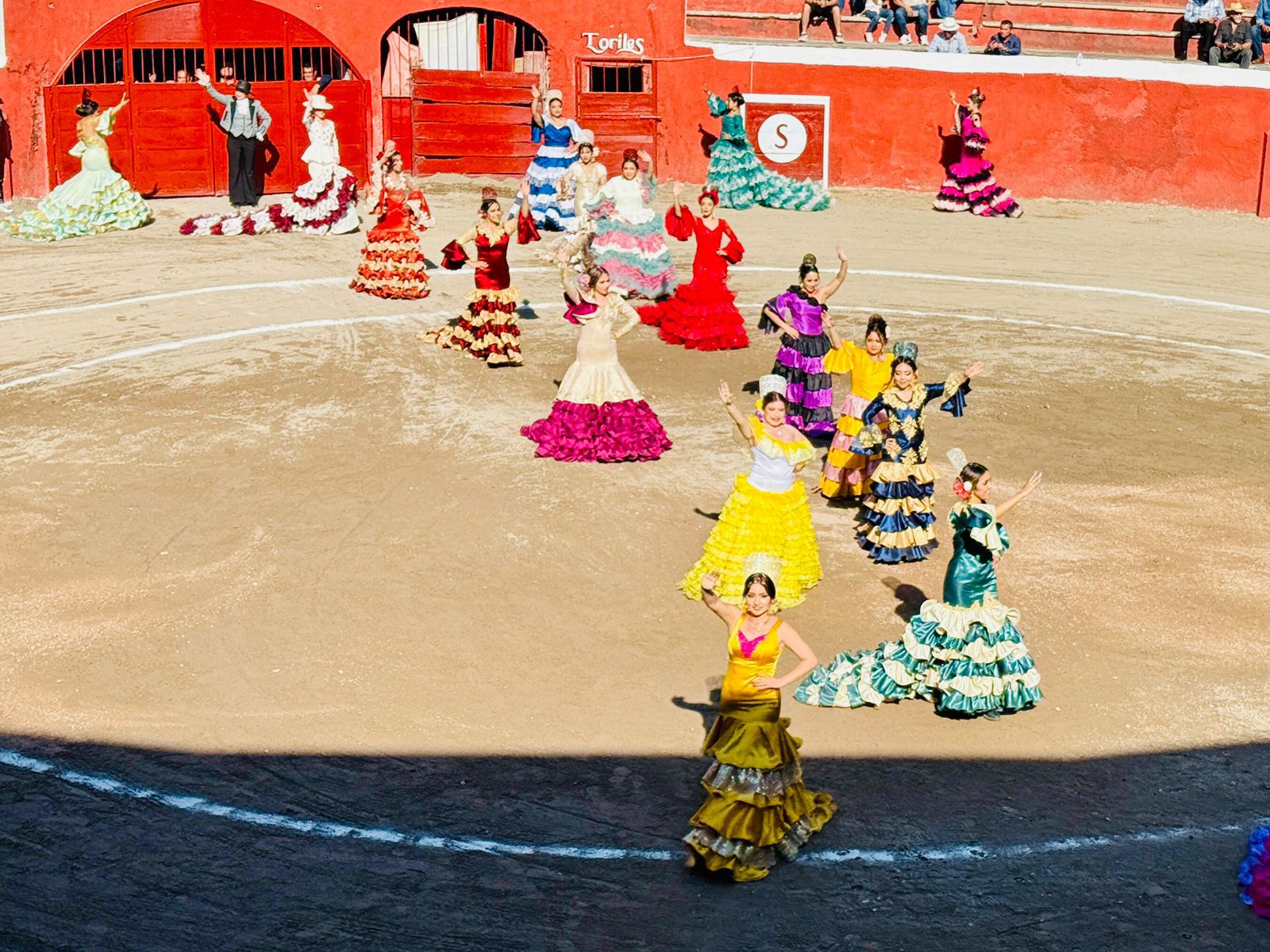 El ambiente festivo se extendió con el desfile de manolas, que recorrió las principales calles de la ciudad, seguido por la exhibición de pasos dobles. La tarde continuó con una corrida en la Plaza de Toros La Macarena y presentaciones de danza en la Explanada del Carmen.