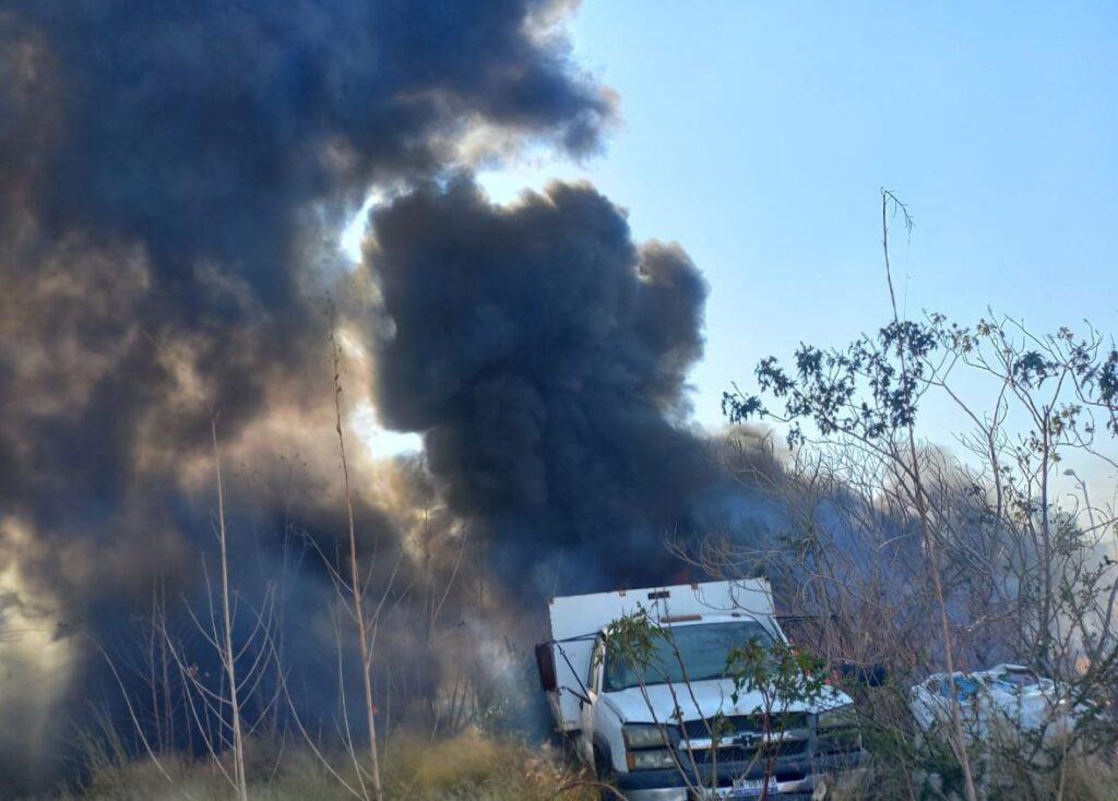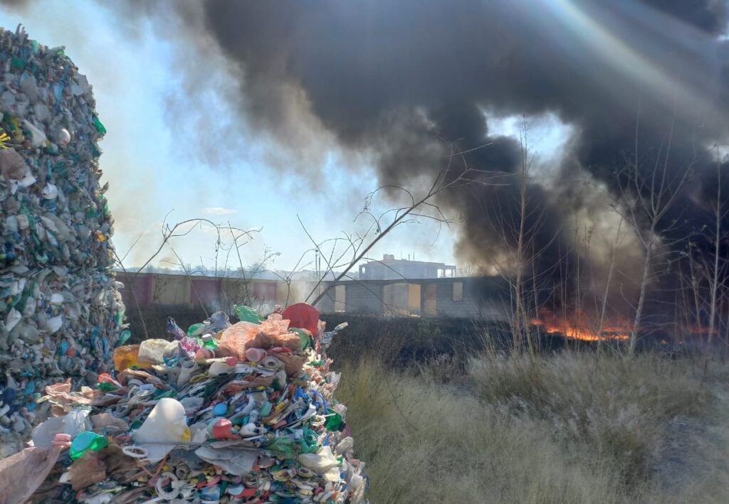 Un incendio de pastizal en las inmediaciones del camino de acceso a la comunidad de Ballesteros se extendió hasta una bodega recicladora de PET, generando un fuerte daño ambiental debido a la quema de botellas de plástico.