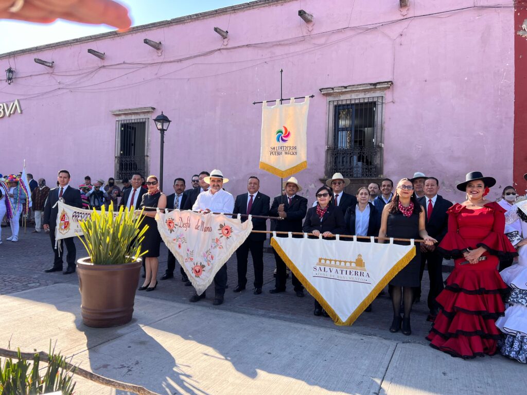 Como parte del desfile cívico-militar, un contingente de Salvatierra se unió a la celebración, integrando a funcionarios de diversas direcciones y coordinaciones municipales, como Secretaría del Ayuntamiento, Desarrollo Económico, Desarrollo Social, Educación, Turismo, Desarrollo Rural, Comunicación Social, Oficialía y Contraloría. Asimismo, las tradicionales manolas desfilaron con orgullo, encabezadas por la reina de la ciudad, Lizeth Primera.