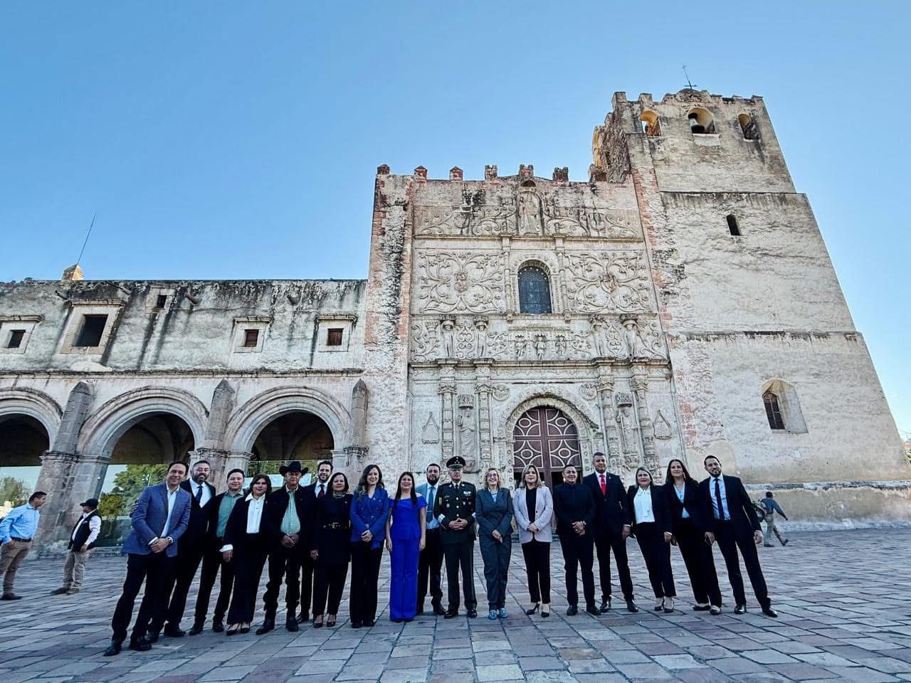 El presidente municipal de Salvatierra, José Daniel Sámano Jiménez, junto con funcionarios públicos y las tradicionales manolas, participaron en los eventos conmemorativos por el 485 aniversario de la fundación de Yuriria.