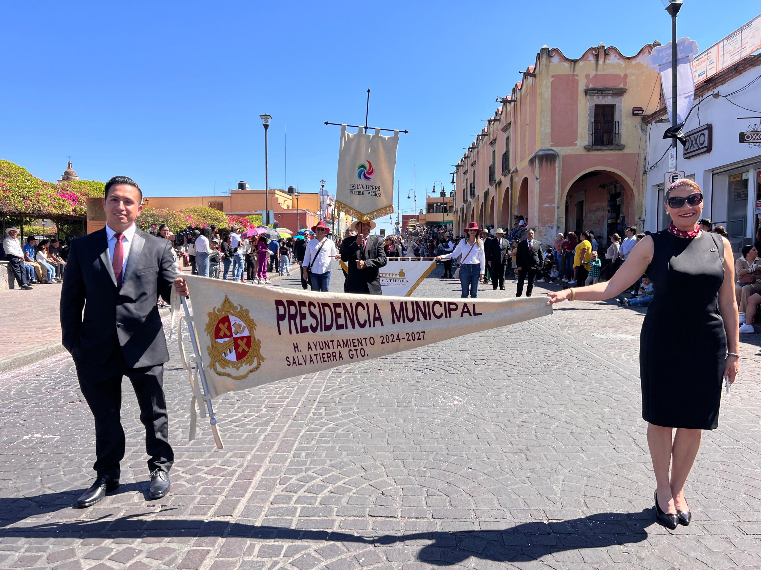 Como parte del desfile cívico-militar, un contingente de Salvatierra se unió a la celebración, integrando a funcionarios de diversas direcciones y coordinaciones municipales, como Secretaría del Ayuntamiento, Desarrollo Económico, Desarrollo Social, Educación, Turismo, Desarrollo Rural, Comunicación Social, Oficialía y Contraloría. Asimismo, las tradicionales manolas desfilaron con orgullo, encabezadas por la reina de la ciudad, Lizeth Primera.