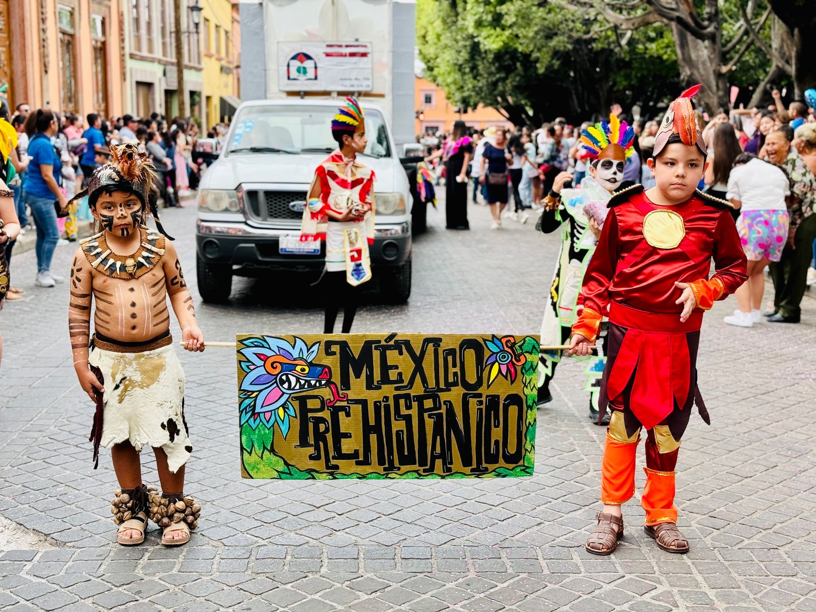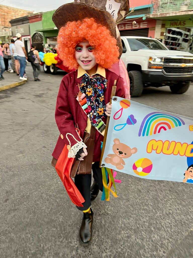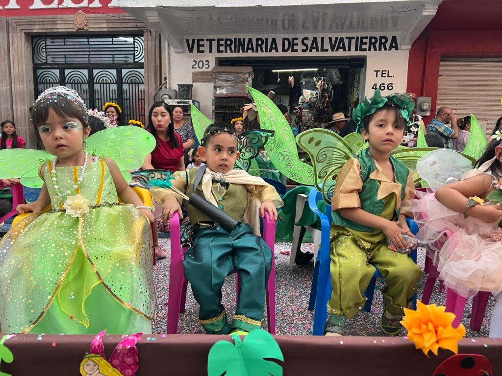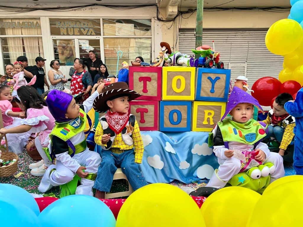 Durante el desfile, los niños lucieron disfraces llenos de creatividad y alegría. Se pudieron apreciar trajes de animales del bosque, personajes de primavera, seres míticos como hadas y elfos, figuras de películas como Toy Story y caricaturas como los Ositos Cariñositos. Algunas instituciones destacaron con representaciones de culturas antiguas, como la egipcia, oriental y griega. Los pequeñines saludaron al público y lanzaron dulces, recibiendo aplausos y sonrisas de los asistentes.