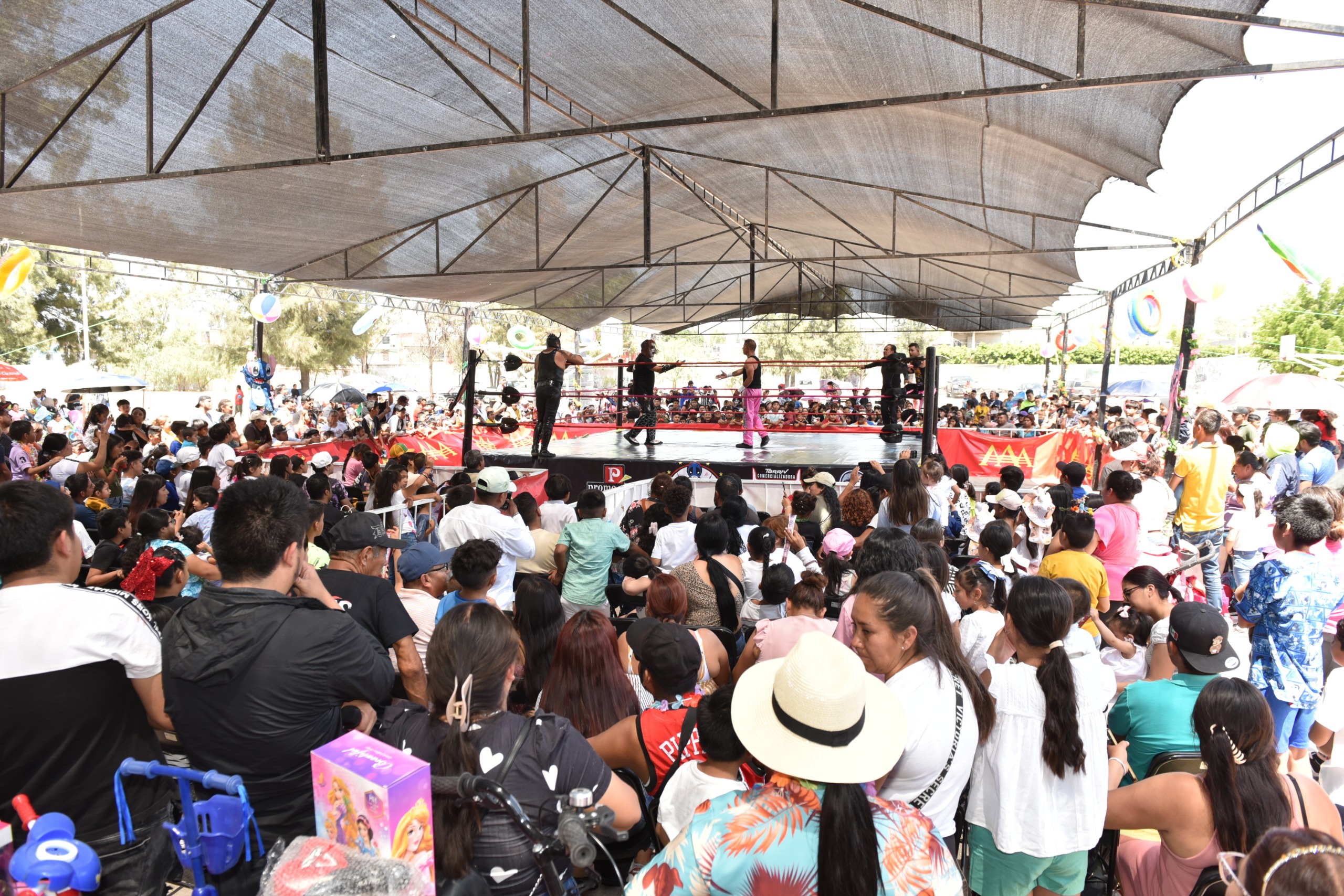 Luego de visitar esas comunidades, la Presidenta estuvo en el Eco Parque en donde anunció y presentó a los gladiadores que hicieron una demostración de Lucha Libre, que fue del gusto de chicos y grades.