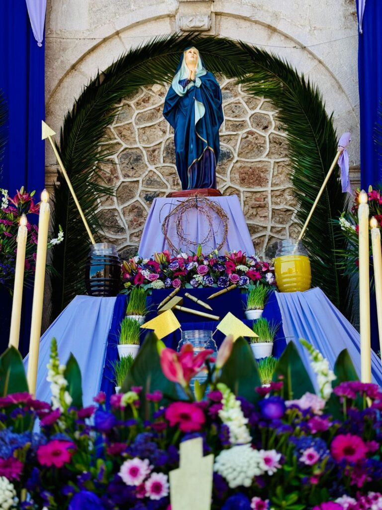 Como parte de las actividades programadas para Semana Santa, este viernes se colocó el tradicional altar en honor a la Virgen de Dolores en la Rinconada del Carmen. Durante el evento, el DIF Municipal obsequió agua fresca y paletas de hielo a las y los asistentes.