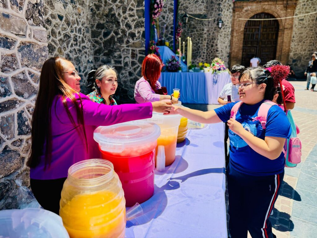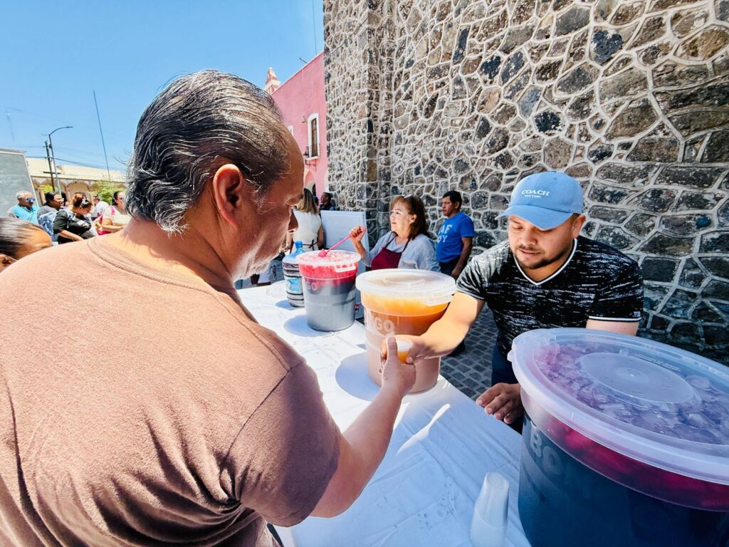 El altar fue instalado en coordinación con las áreas de Eventos Especiales, la Dirección de Turismo y el DIF Municipal, que encabeza la presidenta María Teresa Cerda Rosas. Se repartieron aguas de sabores como mango, fresa, piña, limón y jamaica, así como paletas de hielo, para refrescar a quienes se acercaban con devoción.