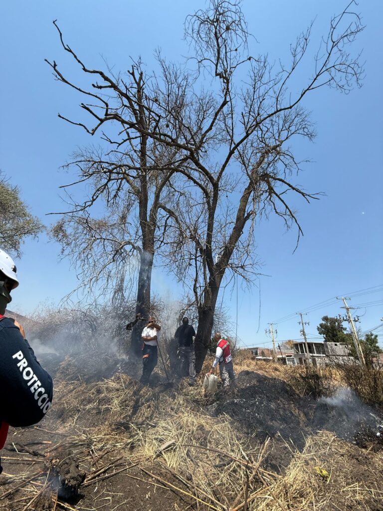 El fuego fue reportado al sistema de emergencias 911 alrededor de las 10:45 de la mañana, lo que movilizó de inmediato a los socorristas de Protección Civil. Con el apoyo de una pipa de agua de Servicios Municipales, los brigadistas trabajaron intensamente durante cerca de tres horas, logrando extinguir por completo las llamas a las 13:15 horas.