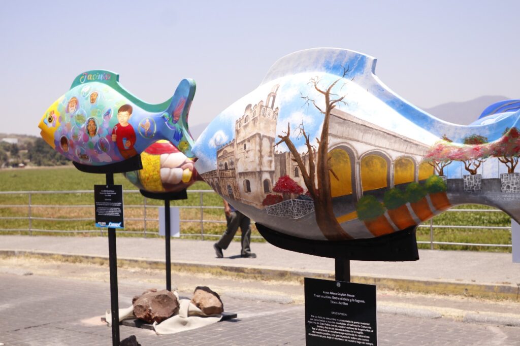 Con el título “Luz y Agua: Guardianes de la Laguna”, Yuriria presenta una galería artística al aire libre compuesta por esculturas de peces en fibra de vidrio, intervenidas por artistas locales. Las piezas, llenas de color y simbolismo, ofrecen una mirada íntima a la identidad colectiva de la comunidad, celebrando su historia, cultura, gastronomía y biodiversidad.
