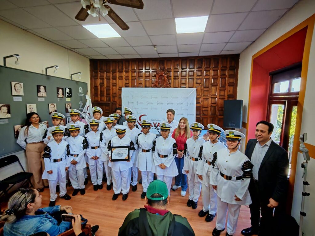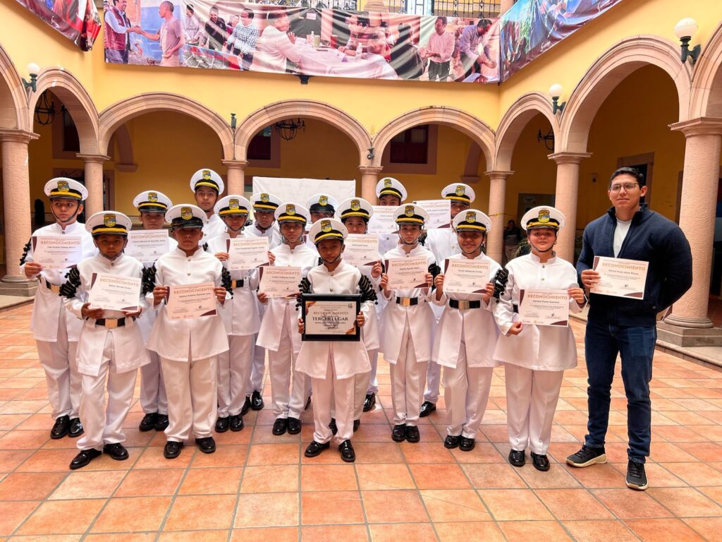 Durante la rueda de prensa “Mañanera”, el presidente municipal José Daniel Sámano Jiménez y la titular del instituto de la Juventud, Paulina Sanabria Reyes, entregaron un reconocimiento a la banda de guerra de la Secundaria General “Alfonso Reyes” por haber obtenido el tercer lugar en el reciente concurso nacional de bandas de guerra.