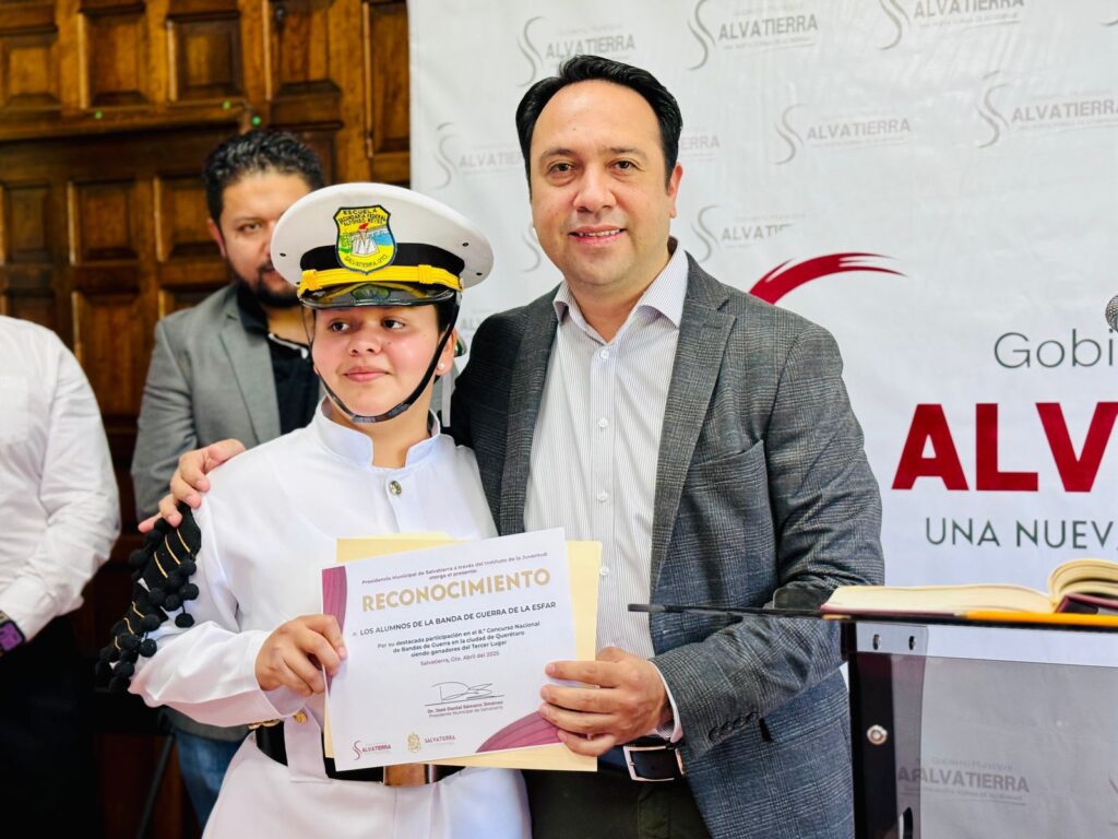 Por su parte, el presidente municipal José Daniel Sámano felicitó a los integrantes de la banda de guerra y a su instructor, destacando que su esfuerzo y disciplina han puesto en alto el nombre de Salvatierra. Además, reconoció el apoyo de los padres de familia y entregó un recurso económico para la adquisición o mantenimiento de los instrumentos.