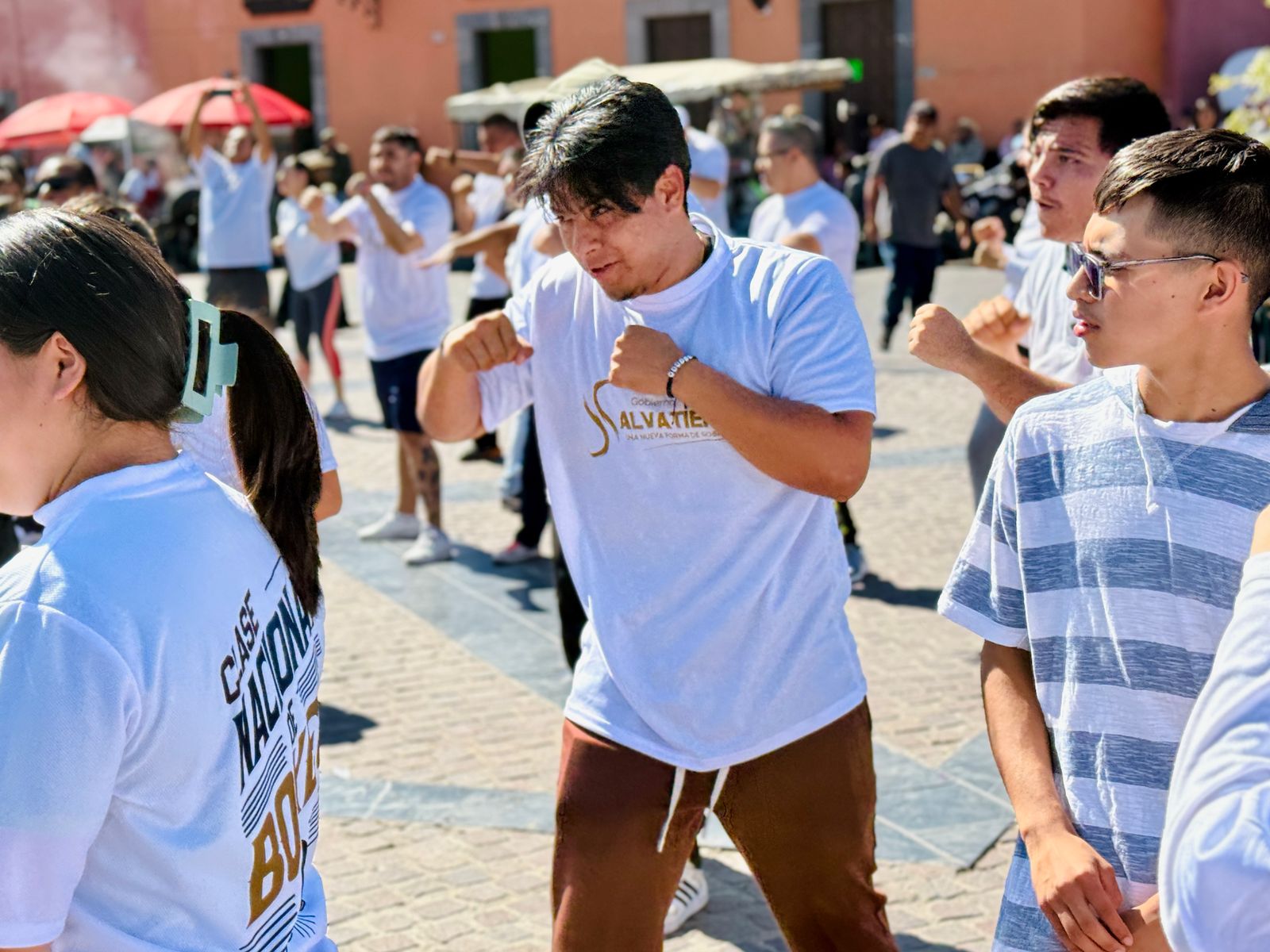 En un ambiente de entusiasmo y participación ciudadana, decenas de personas se congregaron en la Explanada del Carmen para formar parte de la clase nacional masiva de boxeo, impartida por leyendas de este deporte como parte de una iniciativa del Gobierno Federal.