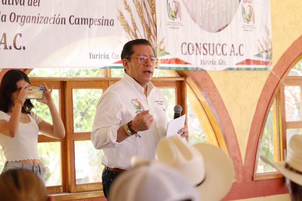 La presidenta municipal de Yuriria, Victoria Eugenia Ramírez Zavala, reafirmó su compromiso con las y los productores del campo, durante la Asamblea con motivo del 33 aniversario del Consejo Nacional de Sociedades y Uniones con Campesinos y Colonos (CONSUCC).