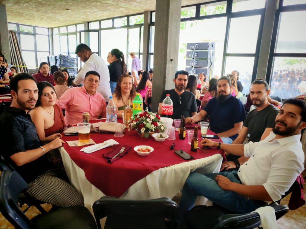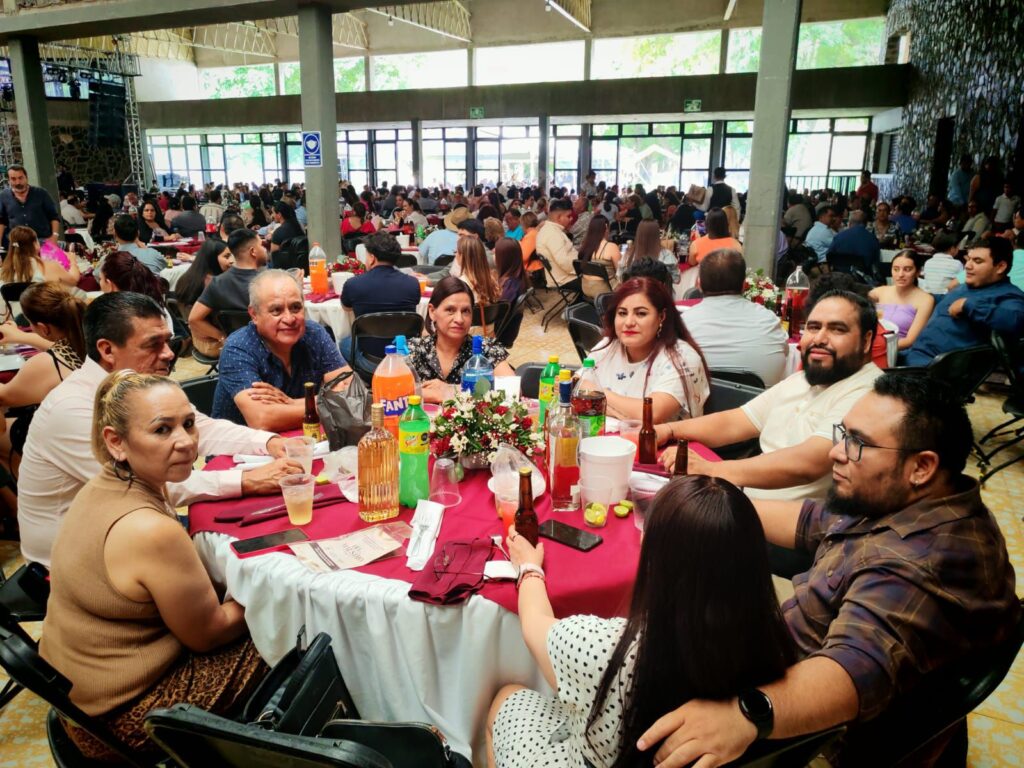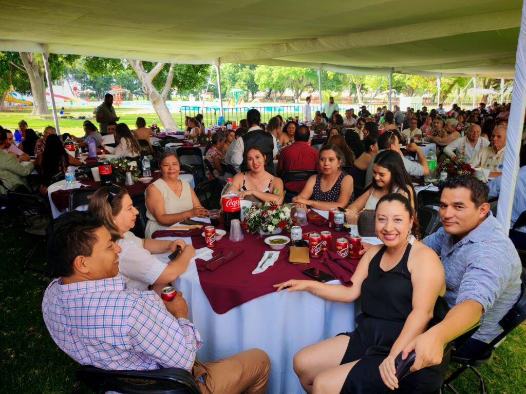 La comida-baile comenzó a partir de las 3 de la tarde y contó con la presencia del presidente municipal, José Daniel Sámano Jiménez; la presidenta del DIF, María Teresa Cerda Rosas; la síndico Marisol Alvarado Barrera; regidores del Ayuntamiento; la directora de Educación, Julia Vera; representantes sindicales y docentes de preescolar, primaria, secundaria, preparatoria y universidad, tanto de instituciones públicas como privadas.