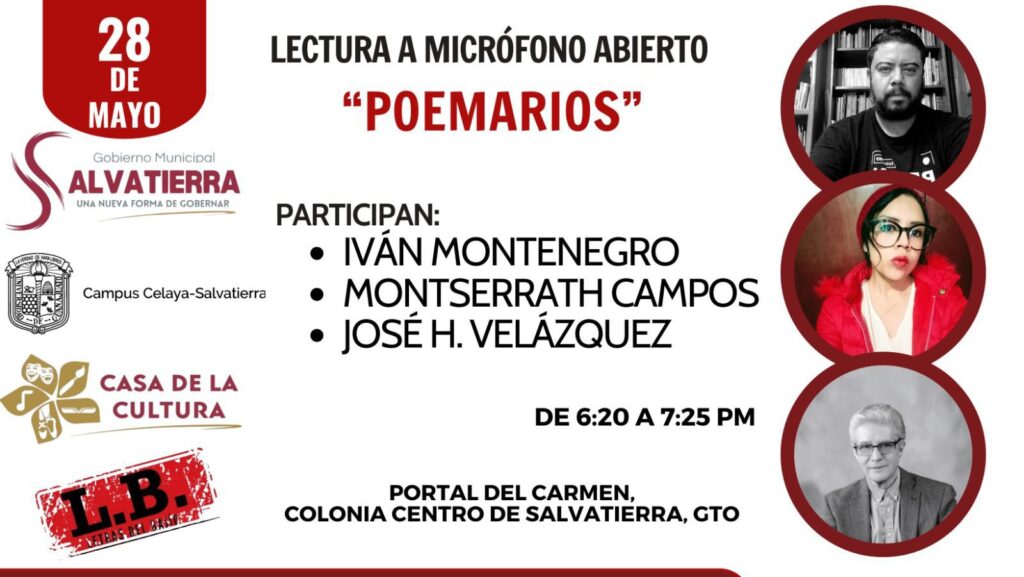 El municipio de Salvatierra, a través de la Dirección de Cultura y en coordinación con la Universidad de Guanajuato, campus Celaya-Salvatierra, llevará a cabo la primera edición de la jornada literaria “Letras del Bajío”, del 27 al 29 de mayo.