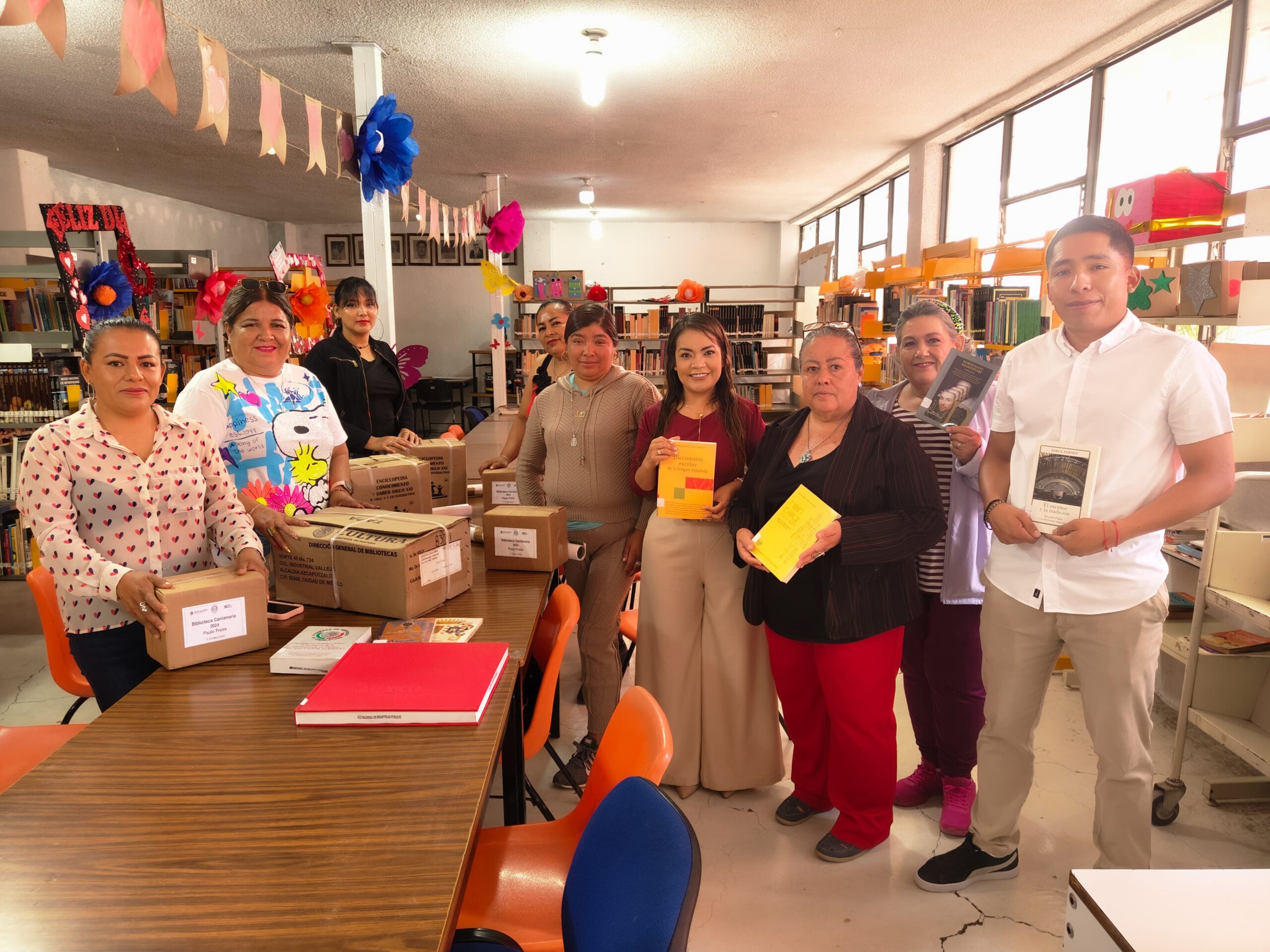 La donación de las 26 cajas con libros, diccionarios, enciclopedias, revistas y material de consulta, para fomentar la lectura y de apoyo en sus tareas, para niños y estudiantes de diferentes niveles de estudio, fueron entregados por la Secretaría de Cultura del Estado.