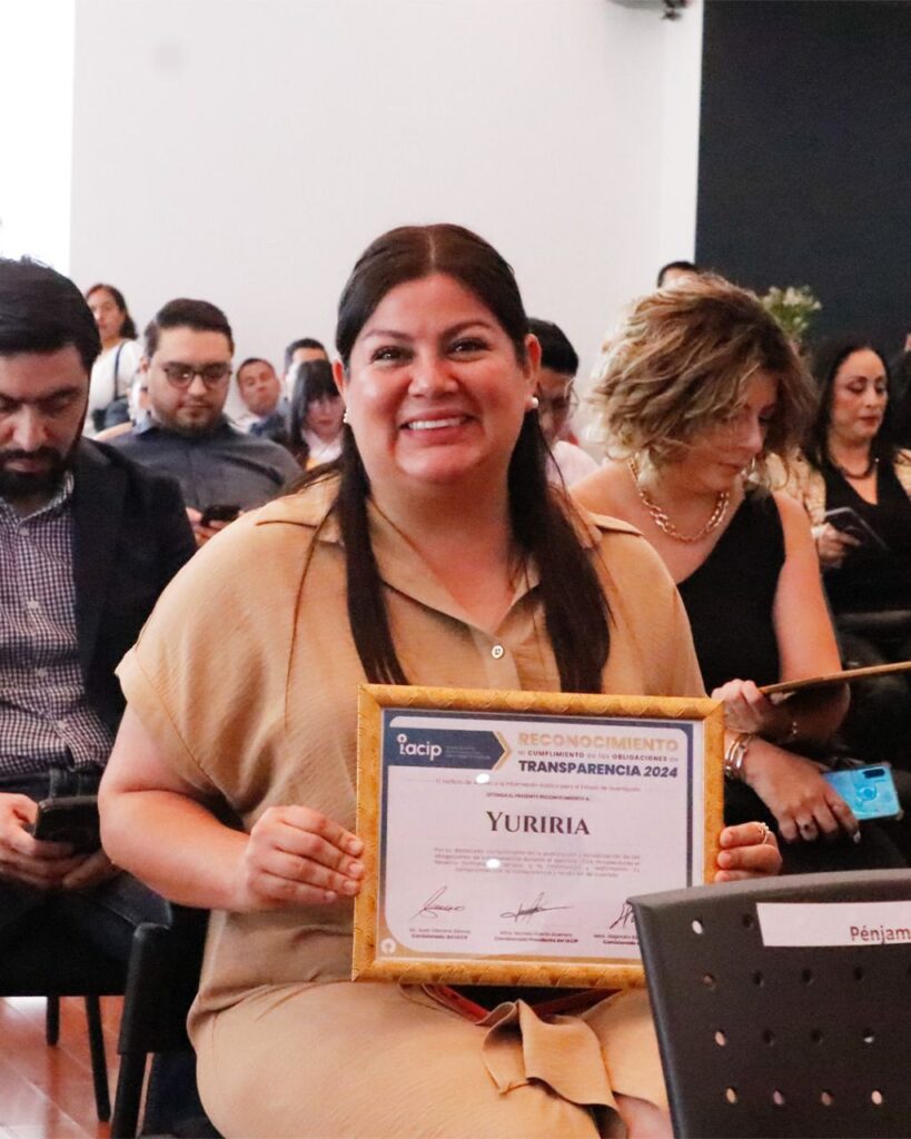 La ceremonia de entrega se llevó a cabo en la ciudad de Guanajuato capital, donde el Ayuntamiento de Yuriria fue representado por la Presidenta Municipal Vicky Ramírez Zavala, el Secretario del Ayuntamiento Braulio Gómez Núñez, y la Directora de Transparencia Caro Núñez Gómez, quienes recibieron el reconocimiento a nombre de todas y todos los servidores públicos del municipio.