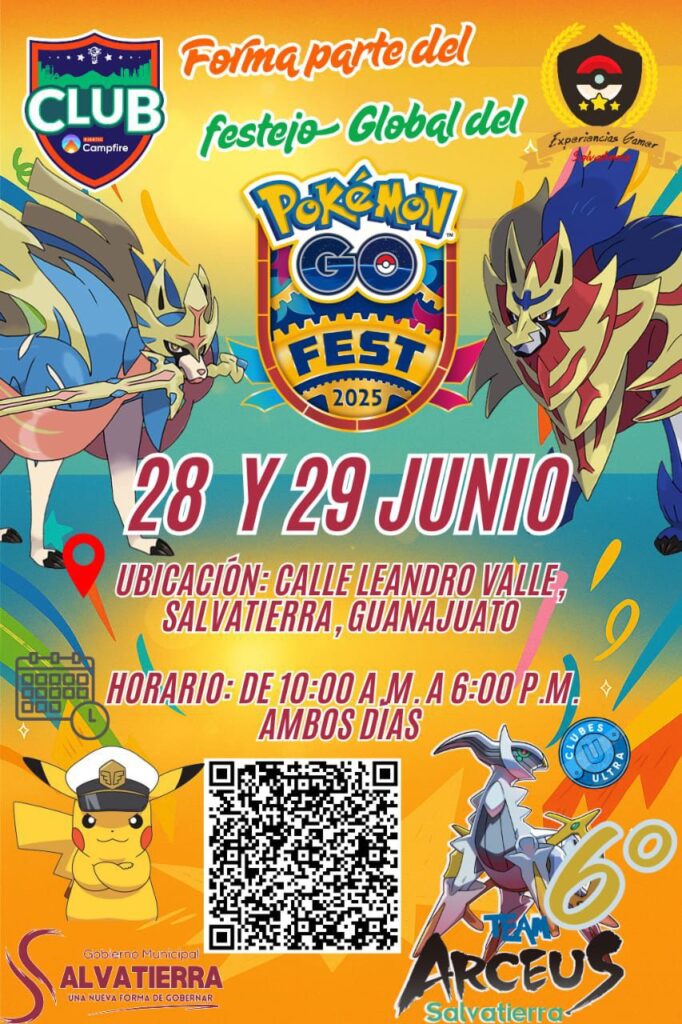 El gobierno municipal de Salvatierra continúa respaldando las iniciativas tecnológicas impulsadas por la juventud, al anunciar la realización del “Festejo Global de Pokémon Go”, un evento que se llevará a cabo los días 28 y 29 de junio, con el objetivo de fomentar la sana convivencia, el turismo virtual y la difusión de la riqueza cultural del municipio.