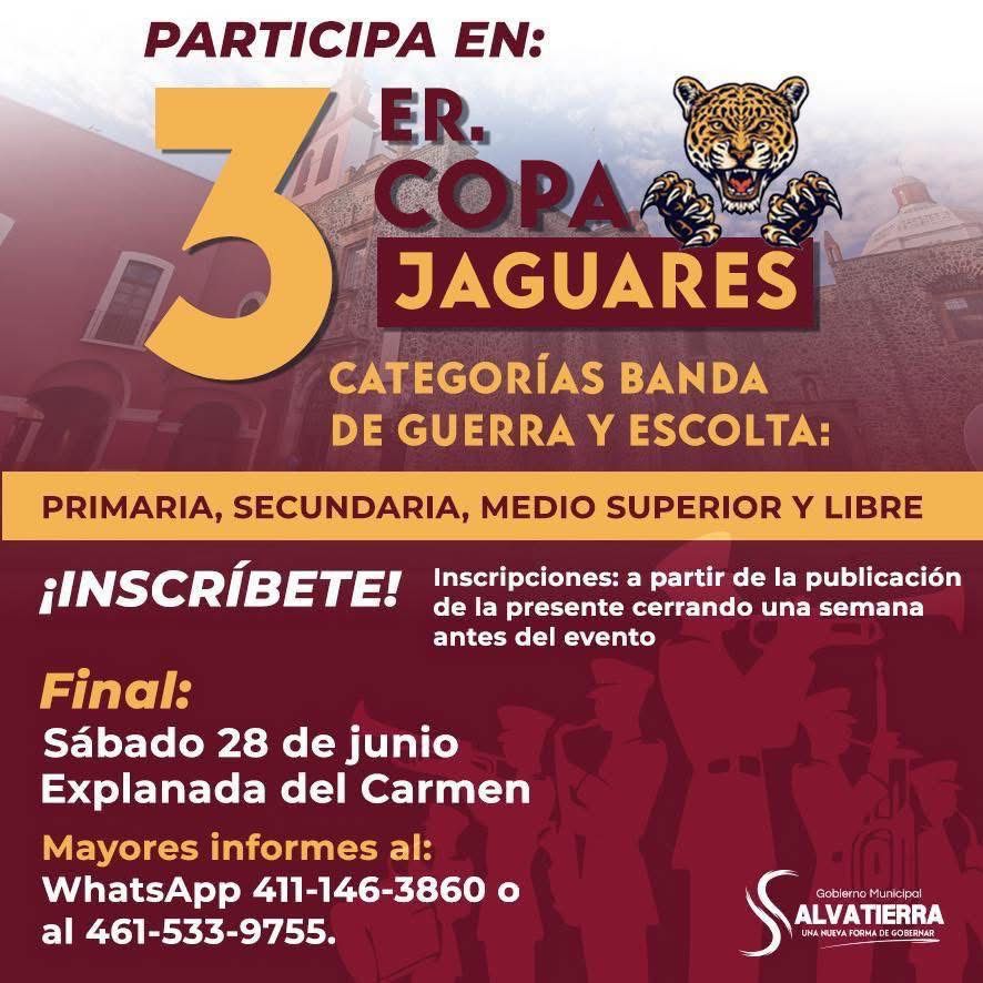El próximo 28 de junio, Salvatierra será sede de la tercera edición de la Copa Jaguares, en las categorías de bandas de guerra y escoltas, evento que reunirá a participantes de distintos estados del país y municipios del estado de Guanajuato.
