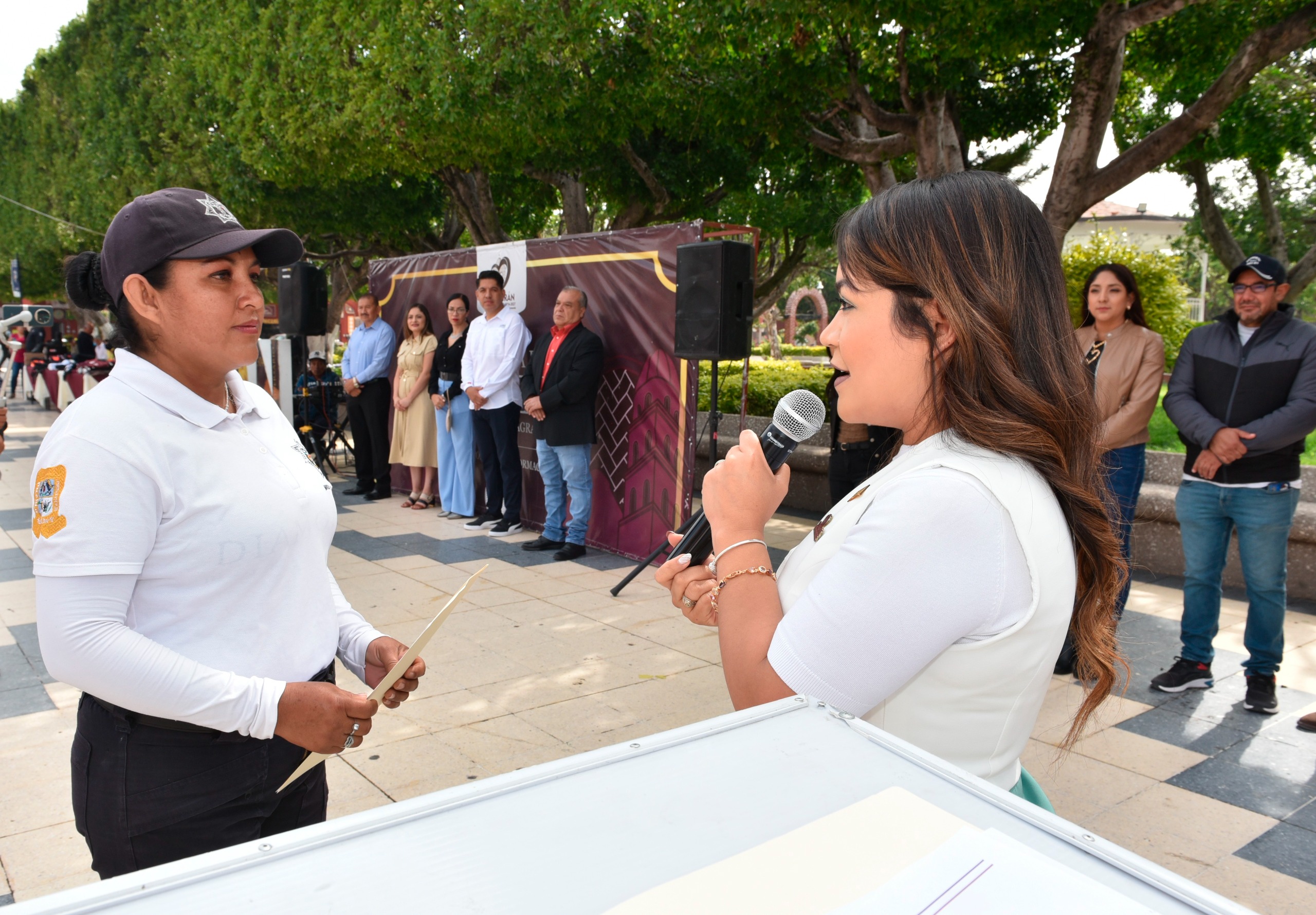 El evento, que se realizó en el jardín principal ante los elementos de vialidad, policía, PC y funcionarios de varios departamentos de presidencia municipal, la presidenta estuvo acompañada por el senador Emmanuel Reyes Carmona.